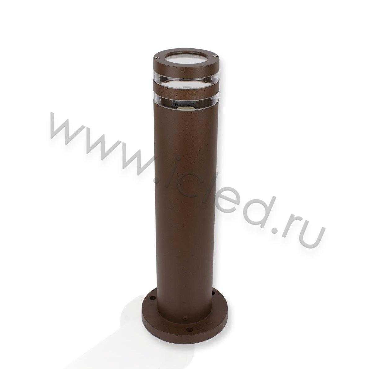 Светодиодный светильник столбик. Корпус имитация ржавчины. Цоколь GU10 для установки ламп до 50Вт (лампа в комплект не входит). Входное напряжение AC 220V , класс защиты IP54, материал алюминий. Размеры высота 500 мм, диаметр 98 мм, диаметр основания 160мм.