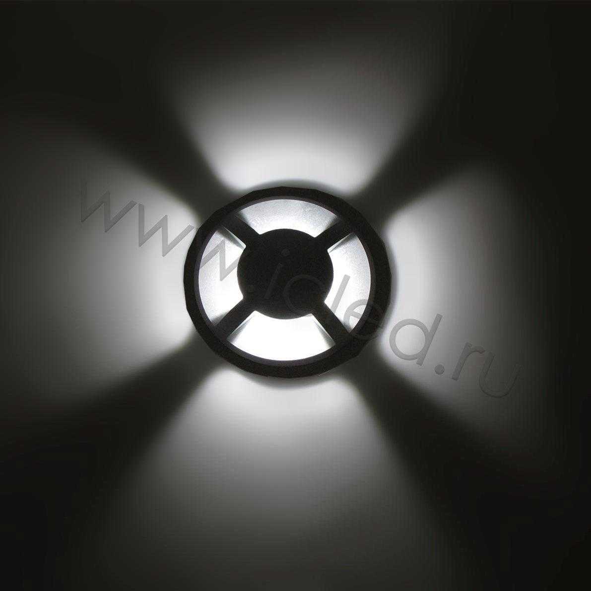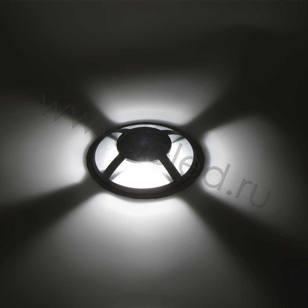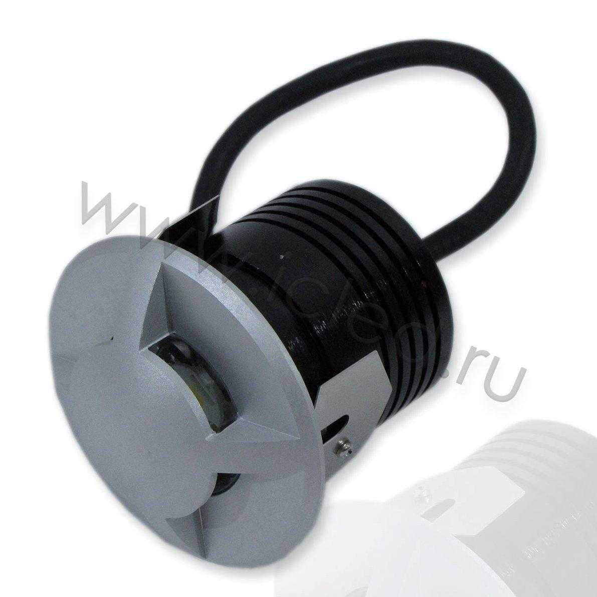 Светодиодный светильник встраиваемый четырехлучевой. Круглый анодированный корпус. Входное напряжение AC 100-240 V , светодиод 1 х 3W COB CITIZEN, цвет свечения белый 5000К, световой поток 350 lm, коэффициент CRI >85, класс защиты IP67, материал алюминий. Диаметр 88 мм, глубина 105 мм.