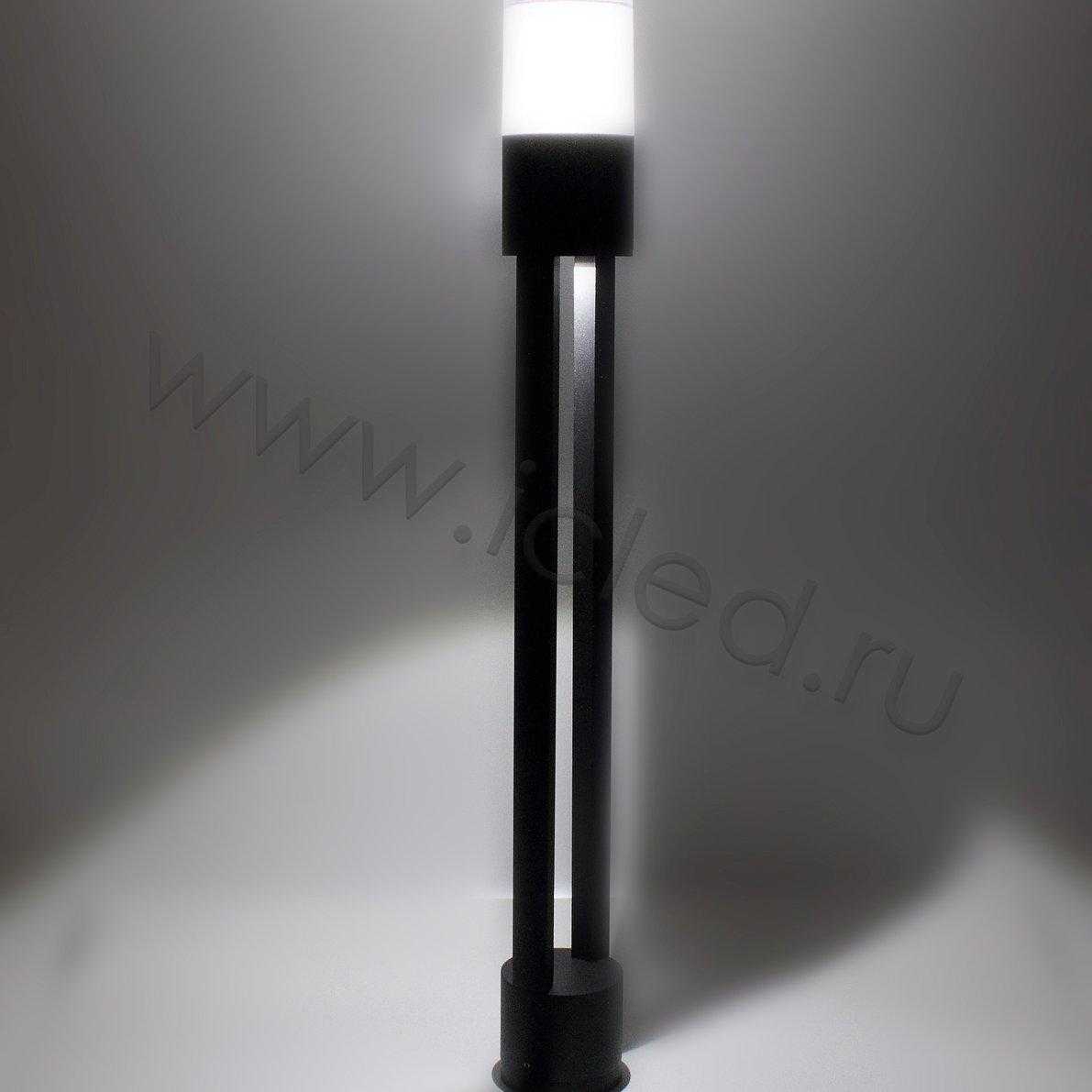 Светодиодный столб ландшафтный. Корпус черный алюминиевый, порошковая краска. Входное напряжение AC 220 V, мощность 6W, цвет свечения белый 6000-6500К, световой поток 600 lm, угол свечения 360 градусов, класс защиты IP54. Диаметр 90мм, высота 800мм. Вес 2000г.