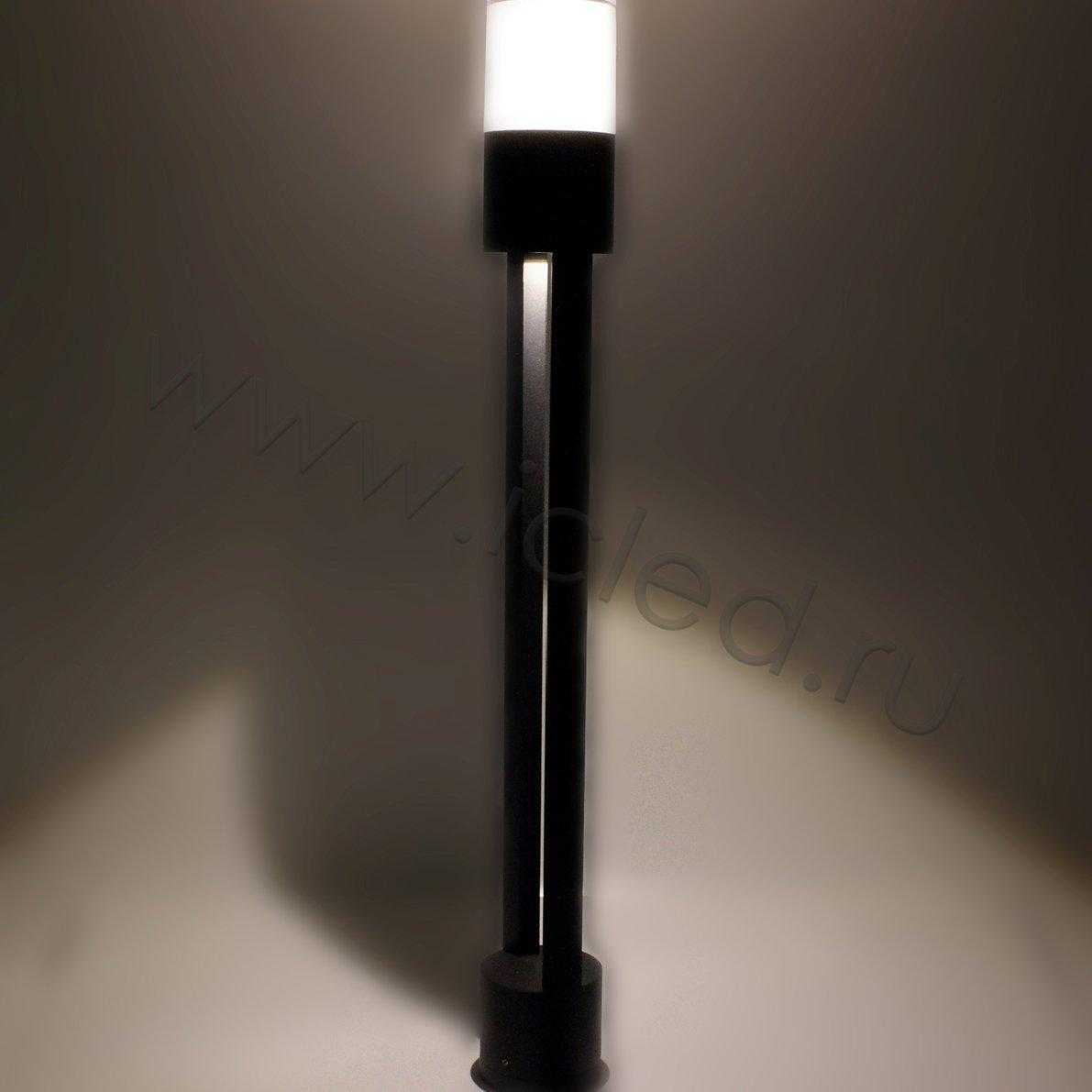Светодиодный столб ландшафтный. Корпус черный алюминиевый, порошковая краска. Входное напряжение AC 220 V, мощность 6W, цвет свечения теплый белый 3000-3500К, световой поток 600 lm, угол свечения 360 градусов, класс защиты IP54. Диаметр 90мм, высота 800мм. Вес 2000г.