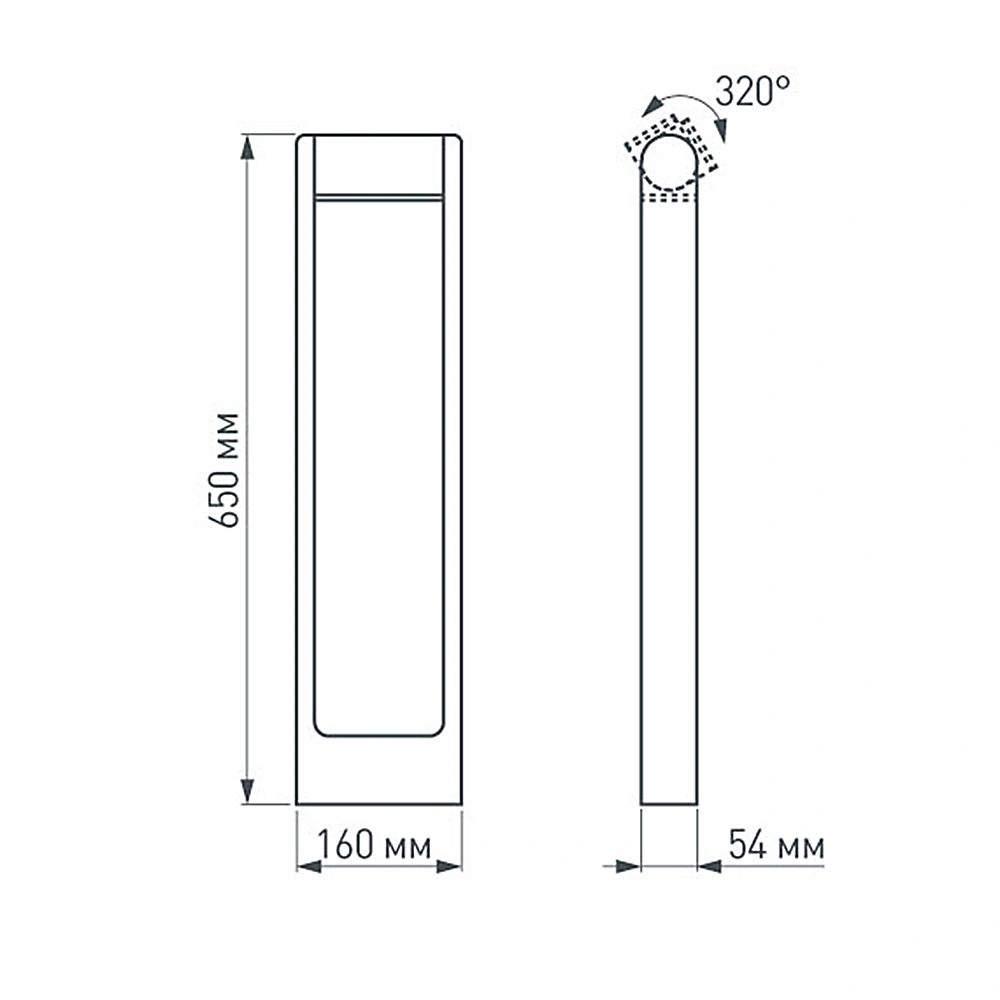Уличный светодиодный светильник серии LGD-PATH-FRAME-ROTARY с теплым белым цветом свечения (3000 К) предназначен для применения в ландшафтном освещении. Широкий угол излучения 111° и световой поток светильника 275 лм идеально подойдут для декоративной подсветки пешеходных дорожек и придомовой территории, формируя визуальную привлекательность ландшафта и архитектурных сооружений. Мощность модели составляет 6 Вт. Фигурный корпус светильника высотой 650 мм выполнен из высококачественного алюминия и покрыт полиэфирной черной порошковой краской, устойчивой к воздействию агрессивных сред и УФ-излучению. Степень защиты от проникновения пыли и влаги (IP65) позволяет эксплуатировать светильник на улице, избегая места с большим скоплением воды. Оптическая часть закрыта ударопрочным матовым экраном из поликарбоната, обеспечивающим высокую степень защиты от внешних воздействий и имеет функцию поворота на 320° для мгновенной регулировки направления светового потока. Равномерная засветка горизонтальной поверхности без слепящего эффекта улучшает видимость в темное время суток, а индекс CRI>80 гарантирует отличную передачу цветов. Встроенный драйвер и герметичный ввод позволяют безопасно и быстро подключить светильник напрямую к сети 230В. Установка на опорную поверхность осуществляется с помощью монтажного основания и анкеров, входящих в комплект. Основание для установки светильника в грунт приобретается отдельно.