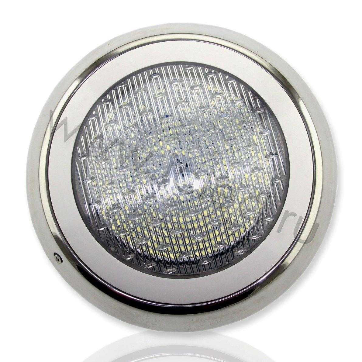 Светильник для бассейна накладной. Корпус из нержавеющей стали. Класс защиты IP68. Тип светодиода 1W 18шт, цвет свечения белый 6000-7000K, напряжение 12V AC/DC, мощность 18W, угол свечения 60 градусов. Диаметр 290мм, высота 165мм.
