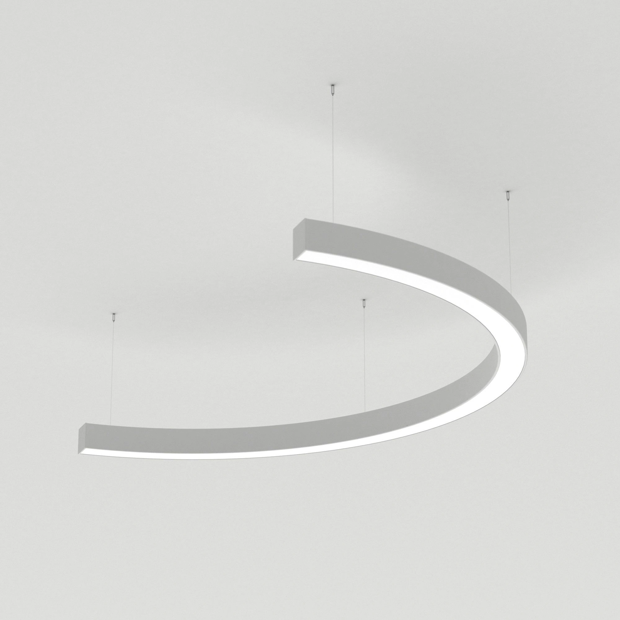 Светильник полукруг из профиля SL-ARC-3535-D800-A90 WHITE, свечение вниз, цвет Тёплый 3000 K (Дуговая линейка ARC арт.027649 в 1 ряд). Диаметр 800 мм, сечение - 36x36 мм. Способ установки - подвесной 2м. Цвет корпуса - белый RAL9003, класс защиты IP20. Световой поток на 1 метр 1052/общий 1316, лм. Мощность 34 Вт, питание 230 В. В комплекте 1 шт блок питания арт.022411, внешний, без управления. Гарантия 36 мес. Поставка в сборе