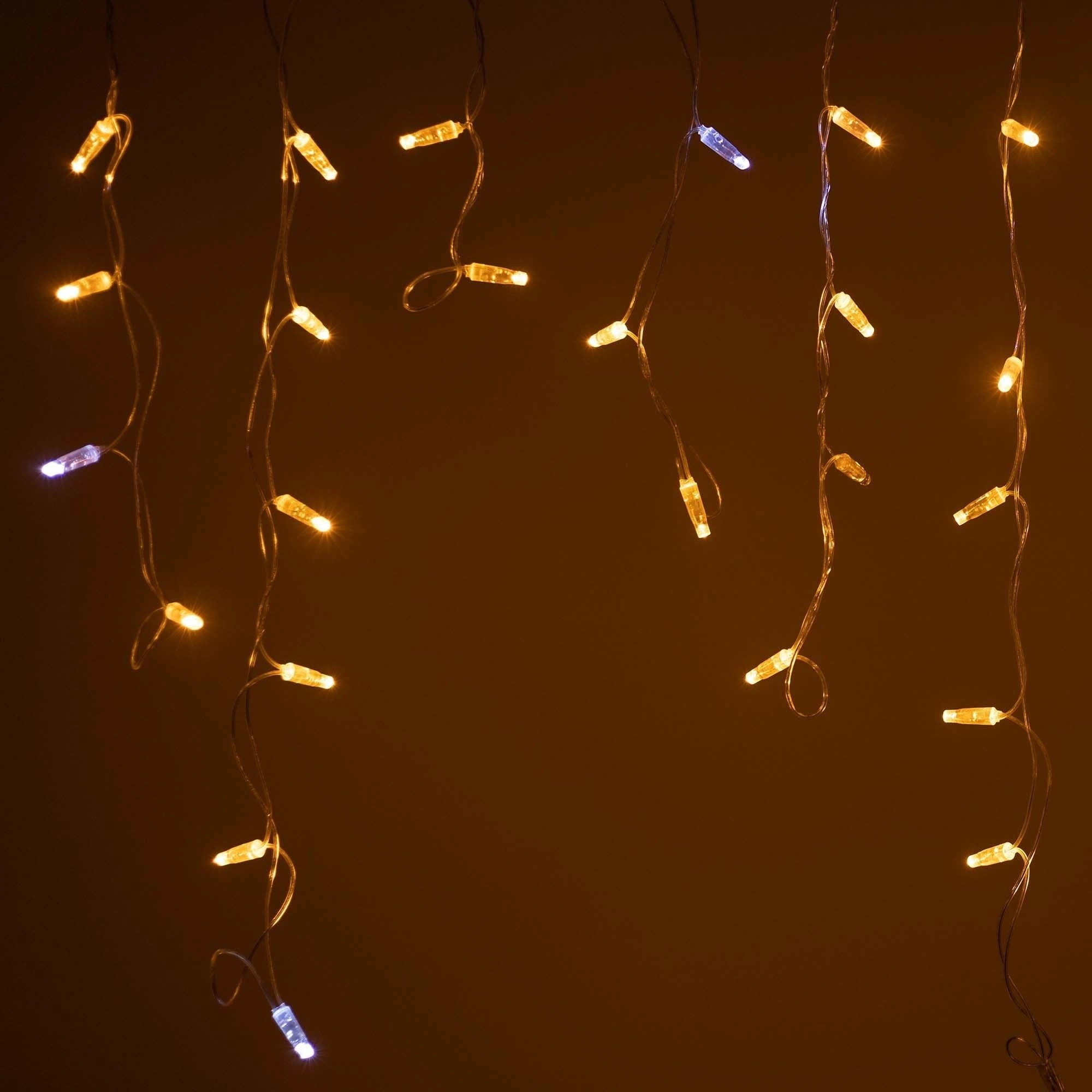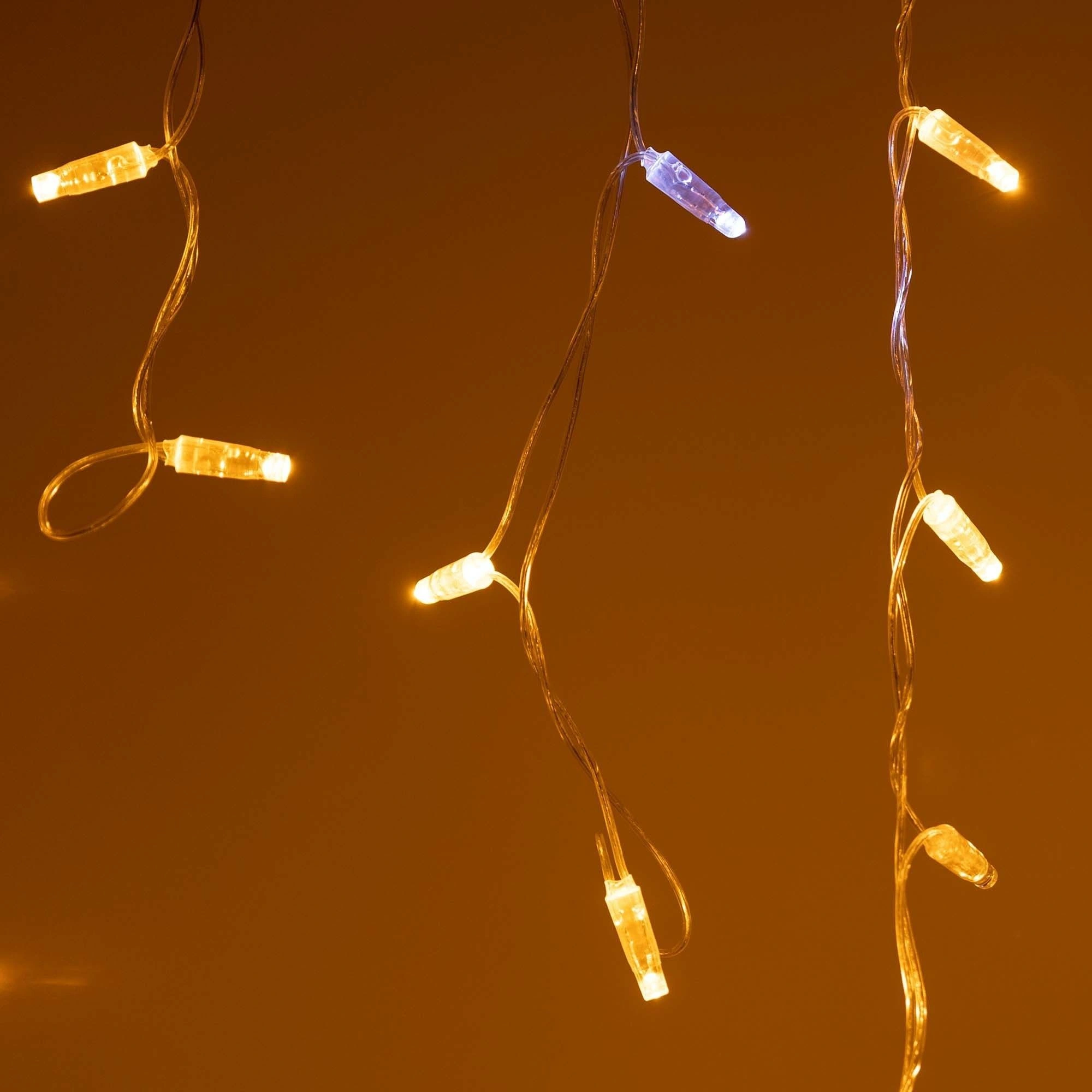 Универсальная светодиодная гирлянда "БАХРОМА" серии Classic идеально подходит для украшения и создания праздничной атмосферы как внутри помещений, так и снаружи (степень пылевлагозащиты IP65 позволяет размещать гирлянду на улице под навесом). Имея размеры 2400 x 600 мм, она может использоваться для оформления небольших и средних площадей. Универсальные соединительные разъемы позволяют наращивать длину до 50 м без использования дополнительных аксессуаров. Прозрачная вогнутая линза и эффект мерцания редких точек обеспечивают яркое и динамичное освещение, выделяя украшаемые объекты. Жёлтый свет, в сочетании с мерцающим белым, помогают создать необходимую атмосферу для декоративного объекта. Прозрачный провод изготовлен из ПВХ. Аксессуары для подключения гирлянды к сети приобретаются отдельно.