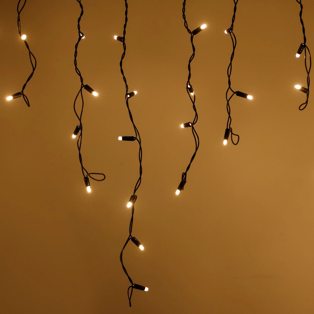 Универсальная светодиодная гирлянда "БАХРОМА" серии Classic идеально подходит для украшения и создания праздничной атмосферы как внутри помещений, так и снаружи (степень пылевлагозащиты IP65 позволяет размещать гирлянду на улице под навесом). Имея размеры 5000 x 500 мм, она может использоваться для оформления средних и больших площадей. Универсальные соединительные разъемы позволяют наращивать длину до 50 м без использования дополнительных аксессуаров. Прозрачная вогнутая линза и эффект мерцания редких точек обеспечивают яркое и динамичное освещение, выделяя украшаемые объекты. Тёплый белый свет, в сочетании с мерцающим белым, помогают создать необходимую атмосферу для декоративного объекта. Провод изготовлен из ПВХ и окрашен в чёрный цвет. Аксессуары для подключения гирлянды к сети приобретаются отдельно.