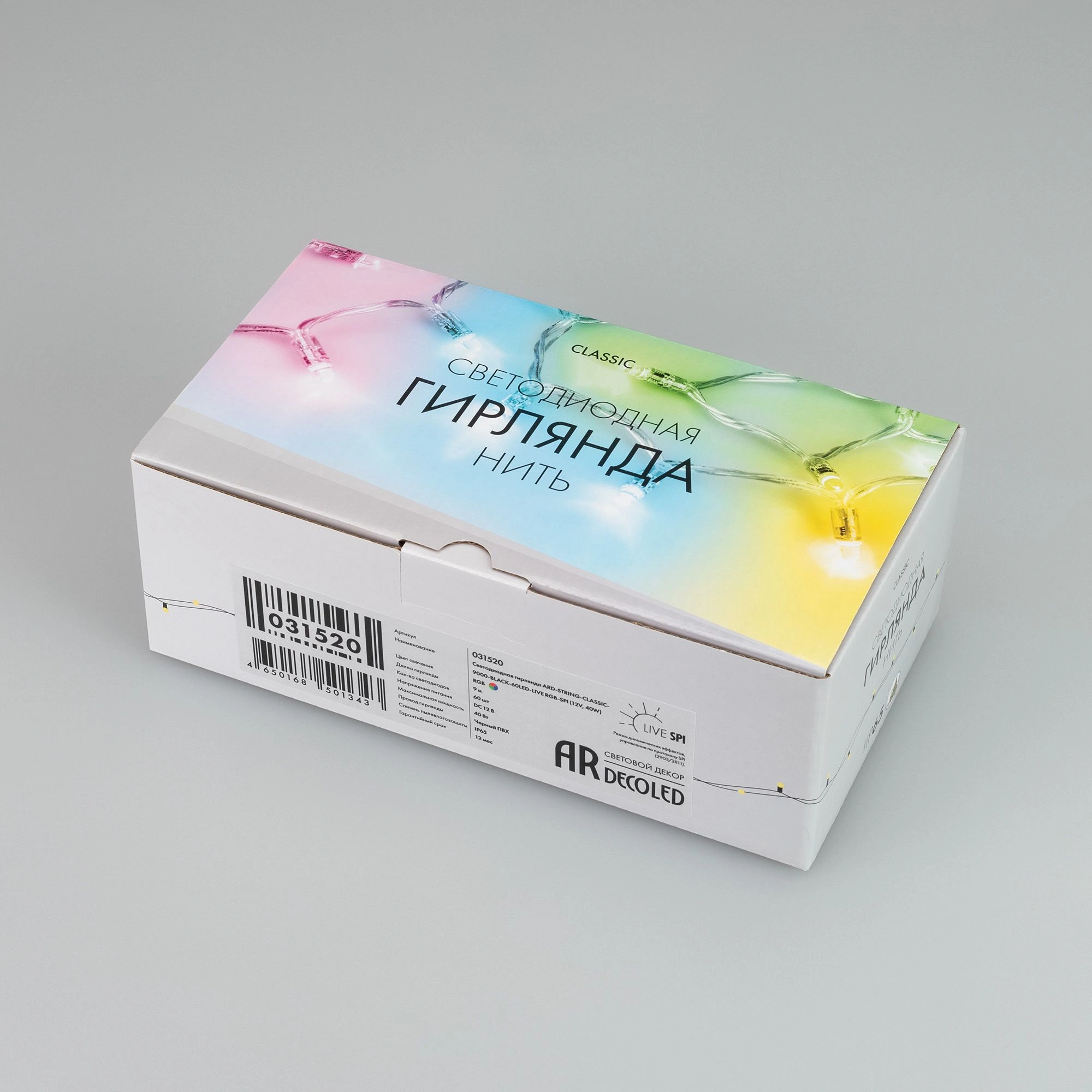 Универсальная светодиодная гирлянда "НИТЬ" серии Classic, предназначенная для декорирования и создания праздничного настроения как внутри помещений, так и снаружи (степень пылевлагозащиты IP65 позволяет размещать гирлянду на улице под навесом). Имея длину 9000 мм, она может использоваться для оформления средних и больших площадей. Универсальные соединительные разъемы позволяют наращивать длину до 50 м без использования дополнительных аксессуаров. Такая функциональность позволяет реализовать проекты декоративного освещения практически любого масштаба. Прозрачная вогнутая линза и динамические и статические эффекты свечения обеспечивают яркое и динамичное освещение украшаемых объектов. RGB свет помогает создать необходимую атмосферу для декоративного объекта. Провод изготовлен из ПВХ и окрашен в чёрный цвет. Для эксплуатации и управления необходимо приобрести аксессуар для подключения и SPI контроллер (см.совместимые). Аксессуары для подключения и управления приобретаются отдельно.