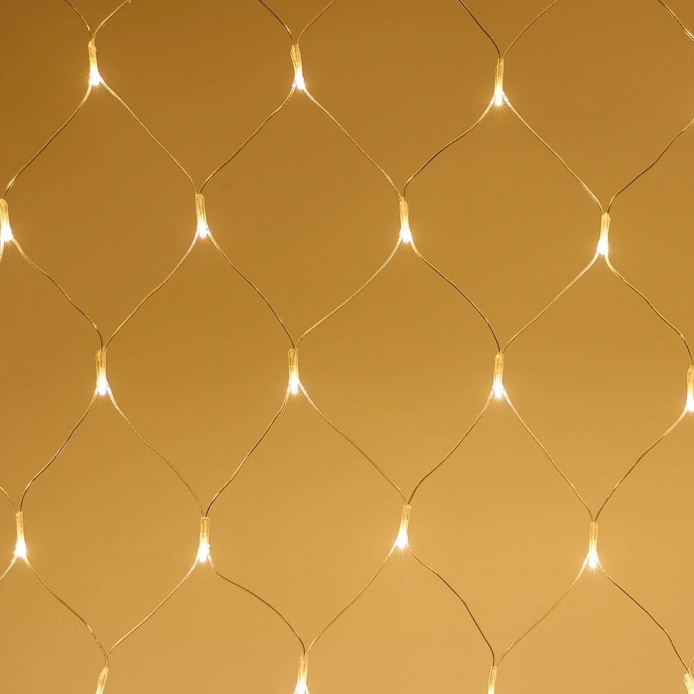 Светодиодная сеть Home. 1500x1500 (длина 1500 мм, высота 1500 мм). Цвет свечения ТЕПЛЫЙ БЕЛЫЙ (3000 К). 150 светодиодов размером 5 мм со статическим и 8 динамическими эффектами свечения с резким световым рисунком (прозрачная вогнутая линза). Провод прозрачный, ПВХ. Питание 230 В, Мощность 15 Вт, защита IP20, применение в помещении. Аксессуары для подключения и выбора режима свечения в комплекте.