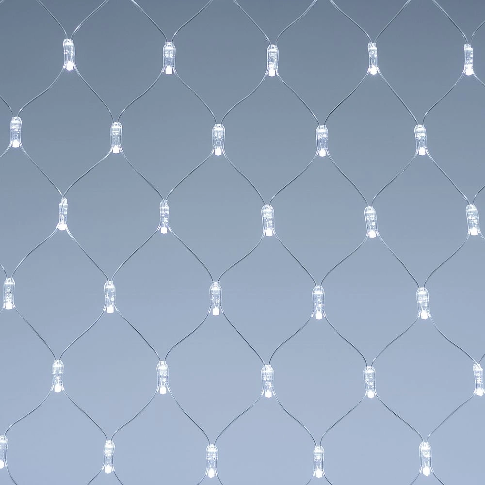 Светодиодная сеть Classic. 2000x1500 (длина 2000 мм, высота 1500 мм). Цвет свечения БЕЛЫЙ (6000 К). 288 светодиодов размером 7 мм со статическим и 8 динамическими эффектами свечения с резким световым рисунком (прозрачная вогнутая линза). Провод прозрачный, ПВХ. Питание 230 В, Мощность 18 Вт,защита IP65, применение в помещении и на улице под навесом Аксессуары для подключения и выбора режима свечения в комплекте.