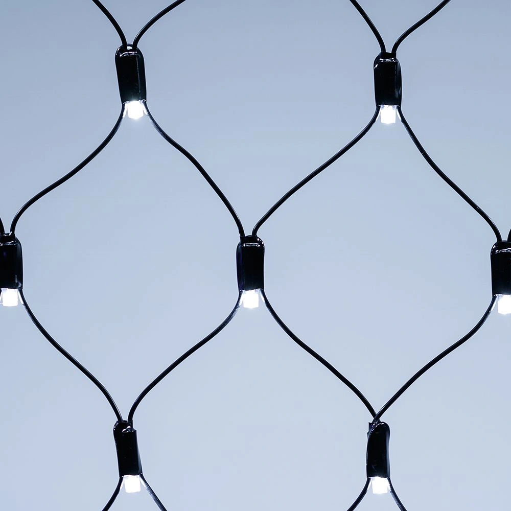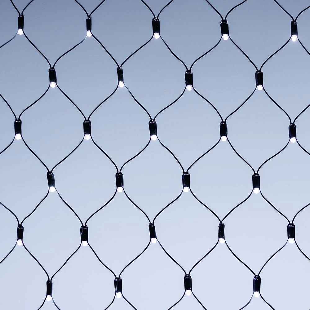 Светодиодная сеть Classic. 2000x1500 (длина 2000 мм, высота 1500 мм). Цвет свечения ТЕПЛЫЙ БЕЛЫЙ (3000 К). 288 светодиодов размером 7 мм со статическим и 8 динамическими эффектами свечения с резким световым рисунком (прозрачная вогнутая линза). Провод прозрачный, ПВХ. Питание 230 В, Мощность 18 Вт,защита IP65, применение в помещении и на улице под навесом Аксессуары для подключения и выбора режима свечения в комплекте.