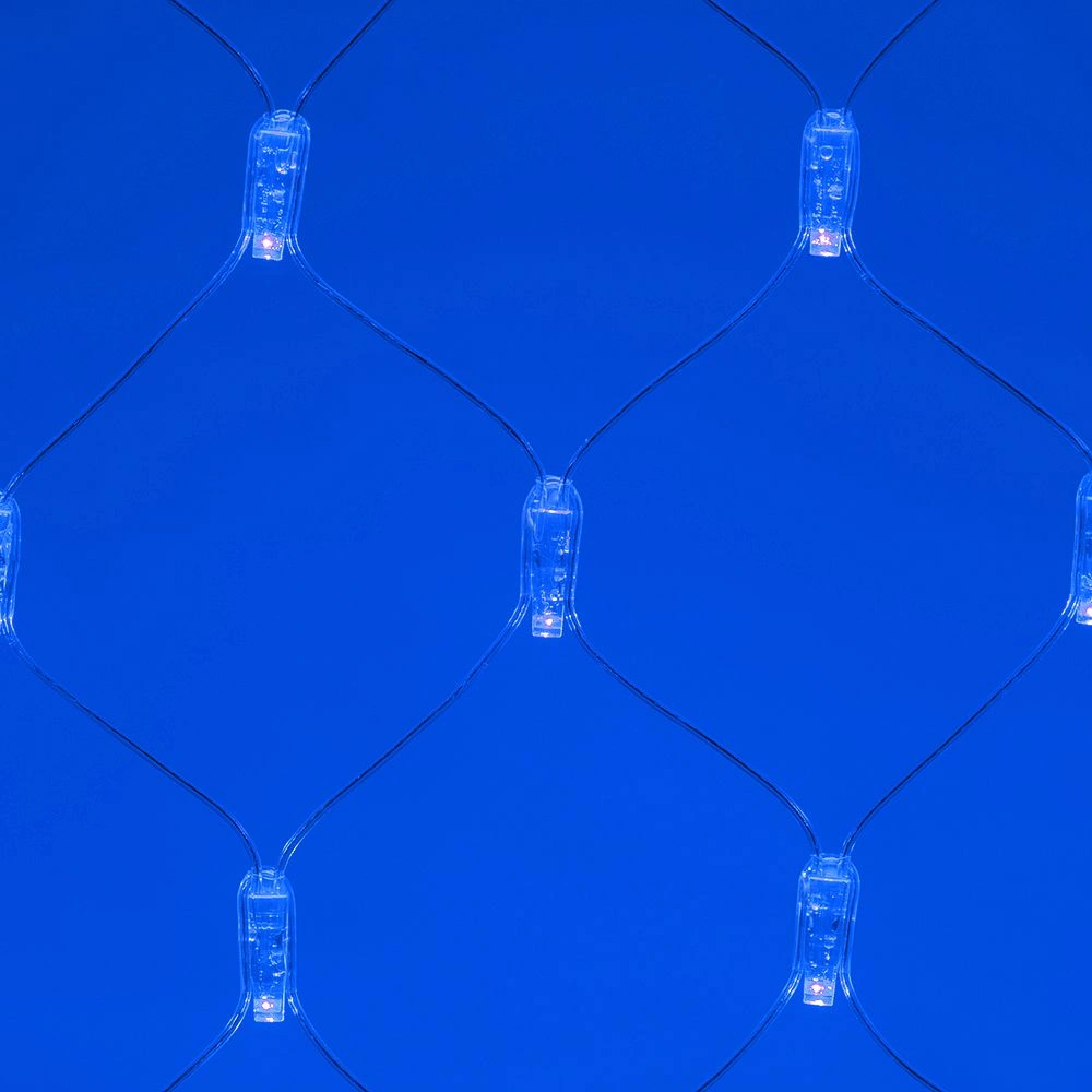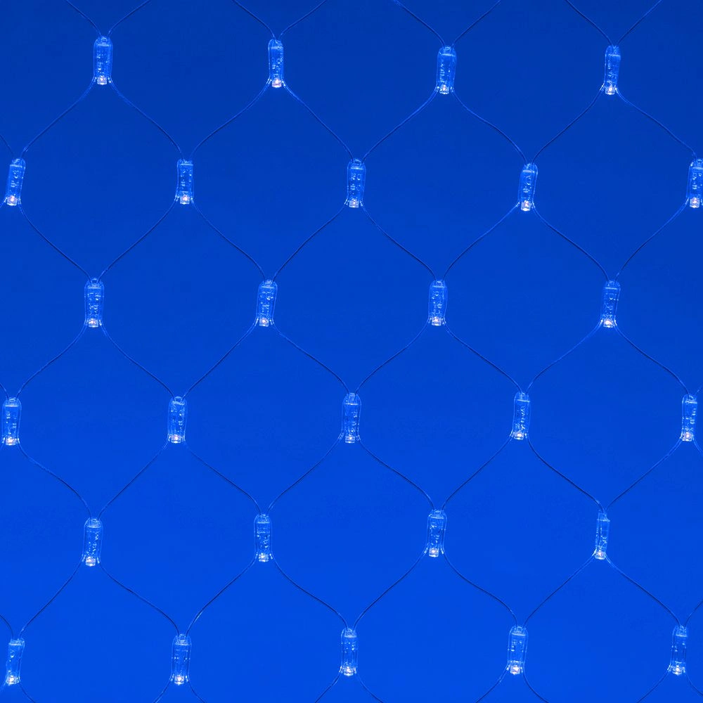 Светодиодная сеть Classic. 2000x1500 (длина 2000 мм, высота 1500 мм). Цвет свечения СИНИЙ. 288 светодиодов размером 7 мм со статическим и 8 динамическими эффектами свечения с резким световым рисунком (прозрачная вогнутая линза). Провод прозрачный, ПВХ. Питание 230 В, Мощность 18 Вт,защита IP65, применение в помещении и на улице под навесом Аксессуары для подключения и выбора режима свечения в комплекте.