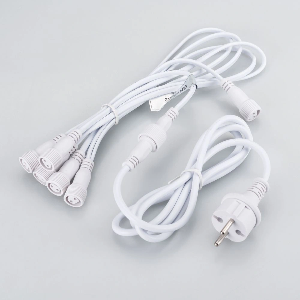 Шина питания для светодиодных гирлянд "Тающая сосулька". Материал оболочки ПВХ. Цвет провода белый. Для подключения 5 сосулек к одной шине. Возможно последовательное подключение до 4 шин. В комплект входит: шина с разъемами подключения сосулек, шнур питания с вилкой европейского стандарта (IP65), разъём последовательного подключения шин. Длина шины 2.5 метра, длина шнура питания 1.5 метра, расстояние между сосульками 500 мм.