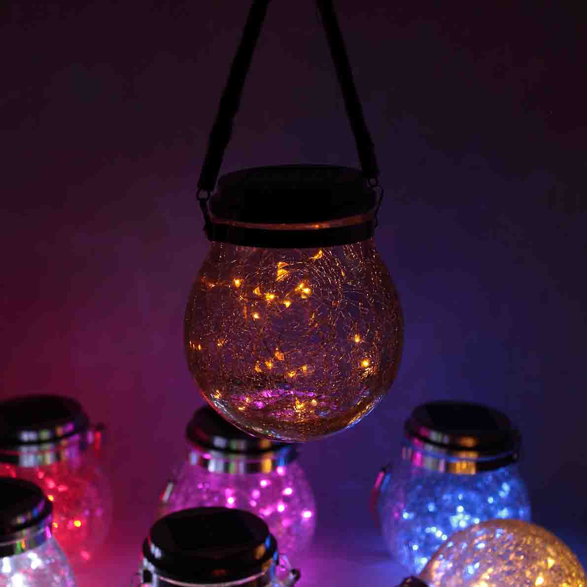 Горшочек декоративный на солнечных батареях со светодиодной нитью. Кол-во светодиодов 20 шт. Цвет свечения желтый. Материал корпуса стекло, металл, пластик. Время зарядки от солнечного элемента 6-8 часов. При отрицательных температурах время работы ограничено до 1-2 часов. Солнечный элемент 2В 120мА, встроенный аккумулятор 1,2В 600мА. Для включения светильника нажмите кнопку на внутренней стороне крышки (светильник включится автоматически при недостаточном освещении). Степень защиты IP65. Диаметр горшочка 120мм, высота светильника 145мм. Размеры упаковки 150х150х180мм. Вес 700г.