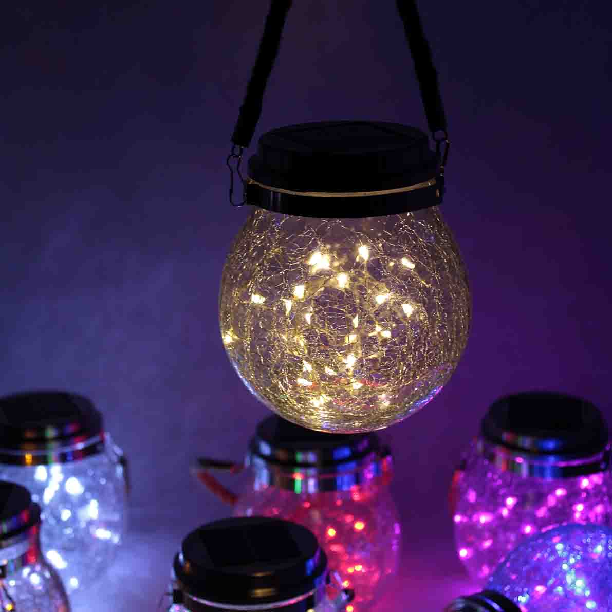 Горшочек декоративный на солнечных батареях со светодиодной нитью. Кол-во светодиодов 20 шт. Цвет свечения теплый белый 3000К. Материал корпуса стекло, металл, пластик. Время зарядки от солнечного элемента 6-8 часов. При отрицательных температурах время работы ограничено до 1-2 часов. Солнечный элемент 2В 120мА, встроенный аккумулятор 1,2В 600мА. Для включения светильника нажмите кнопку на внутренней стороне крышки (светильник включится автоматически при недостаточном освещении). Степень защиты IP65. Диаметр горшочка 120мм, высота светильника 145мм. Размеры упаковки 150х150х180мм. Вес 700г.