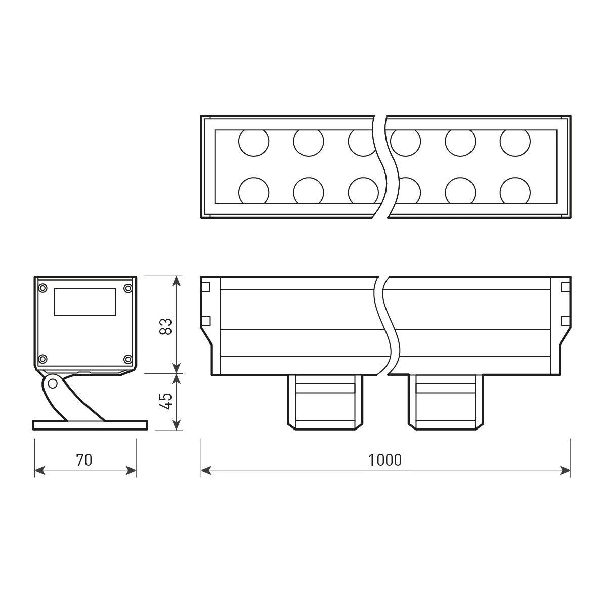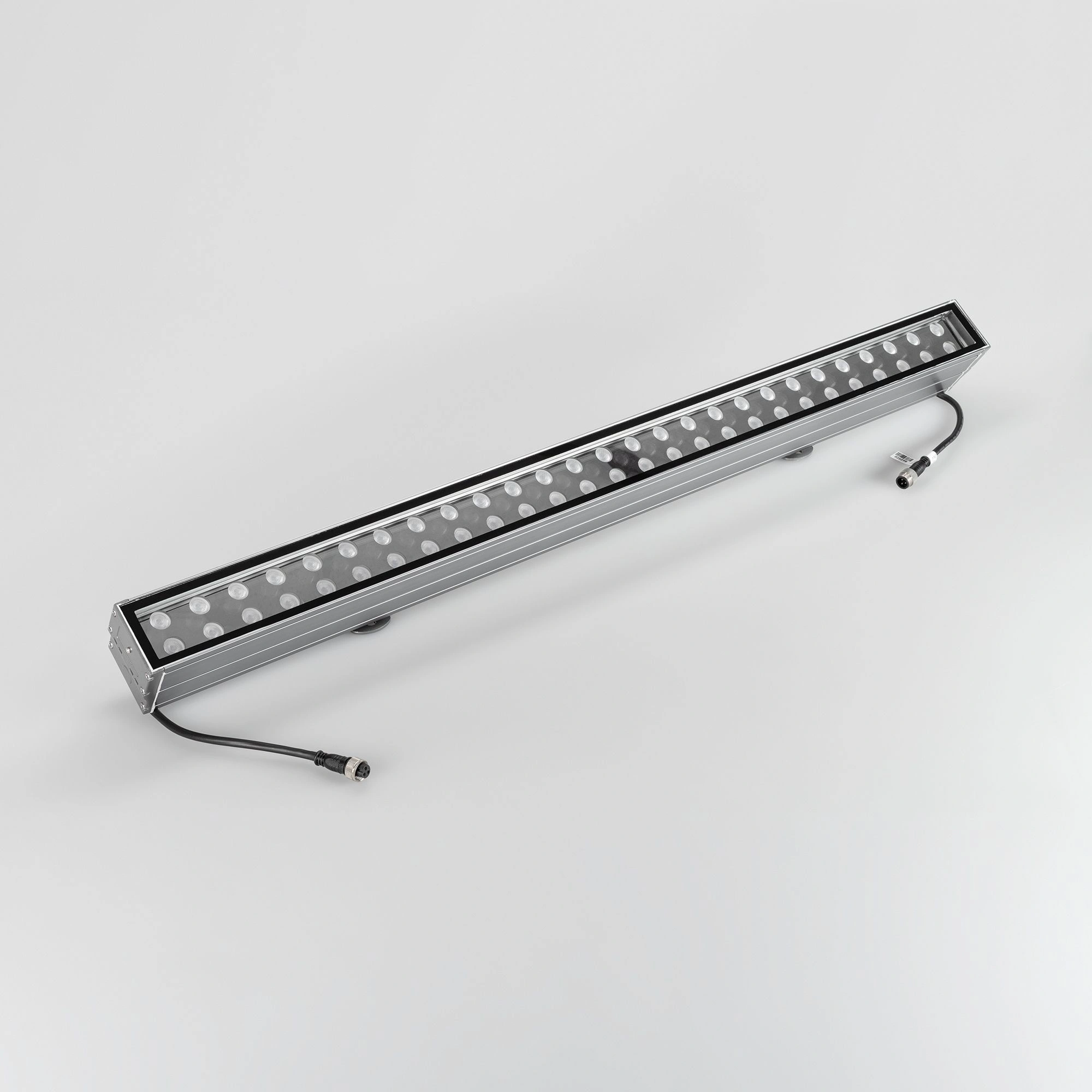 Линейный светодиодный прожектор AR-LINE-1000XL-54W-230V White (Grey, 30 deg) мощностью 54 Вт с белой температурой свечения 6000К и световым потоком 4300 лм широко используется для декоративной подсветки зданий, а также архитектурных и скульптурных объектов: памятников, мостов, арок и т. д. Специальная оптика, установленная в прожекторе, формирует распределение светового потока с узконаправленным углом излучения 30°, что позволяет создать яркую и красивую иллюминацию фасадов зданий, а также сделать акценты на архитектурных формах. Применение в прожекторе SMD-светодиодов с высокой световой эффективностью 80 лм/Вт экономит значительную долю электроэнергии. Алюминиевый корпус серого цвета, с размерами 1000х128х70 мм и степенью пылевлагозащиты на уровне IP65, дает возможность эксплуатировать прожектор как в помещениях, так и на открытом воздухе под навесом, избегая места с большим скоплением воды. Встроенный драйвер позволяет быстро и безопасно подключить прожектор напрямую к сети 230 В. Герметичные разъемы, входящие в комплект, упрощают подключение прожектора к кабелю питания и соединение прожекторов последовательно в группы, а два поворотных кронштейна обеспечивают надежный монтаж на поверхности.