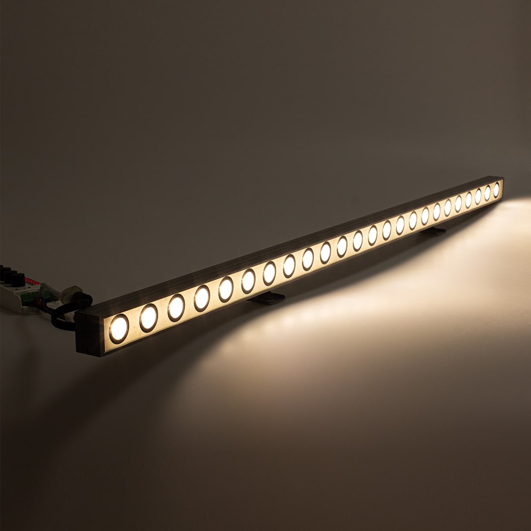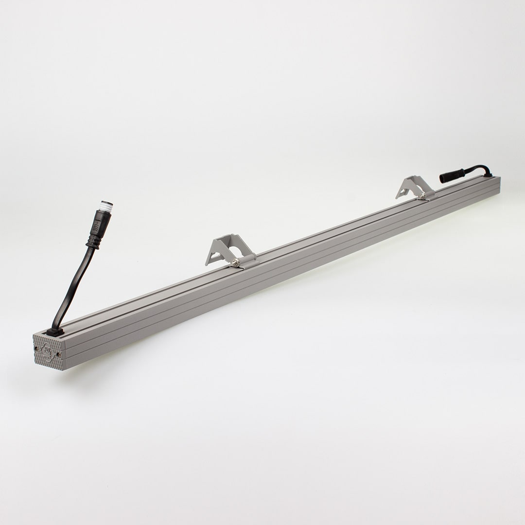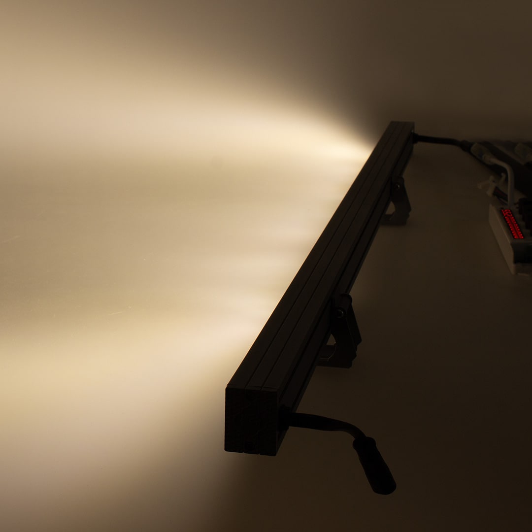 Линейный светодиодный прожектор. Напряжение DC24V, мощность 24W, цвет свечения теплый белый 3000K, угол свечения 15 градусов. Размеры 995x28x36мм. Вес 1000г.
