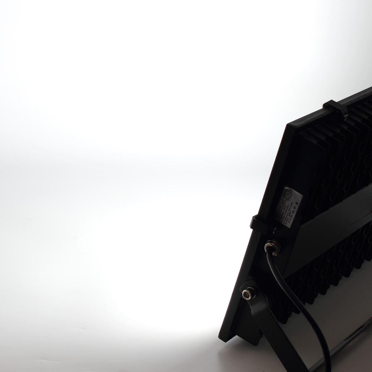 Светодиодный прожектор. Напряжение 85-265V, мощность 200W, цвет свечения белый 5500-6500К, световой поток 90Lm/w, угол свечения 120 градусов, степень защиты IP66. Размеры 365x290x42мм. Вес 2350г. Гарантия 2 года.