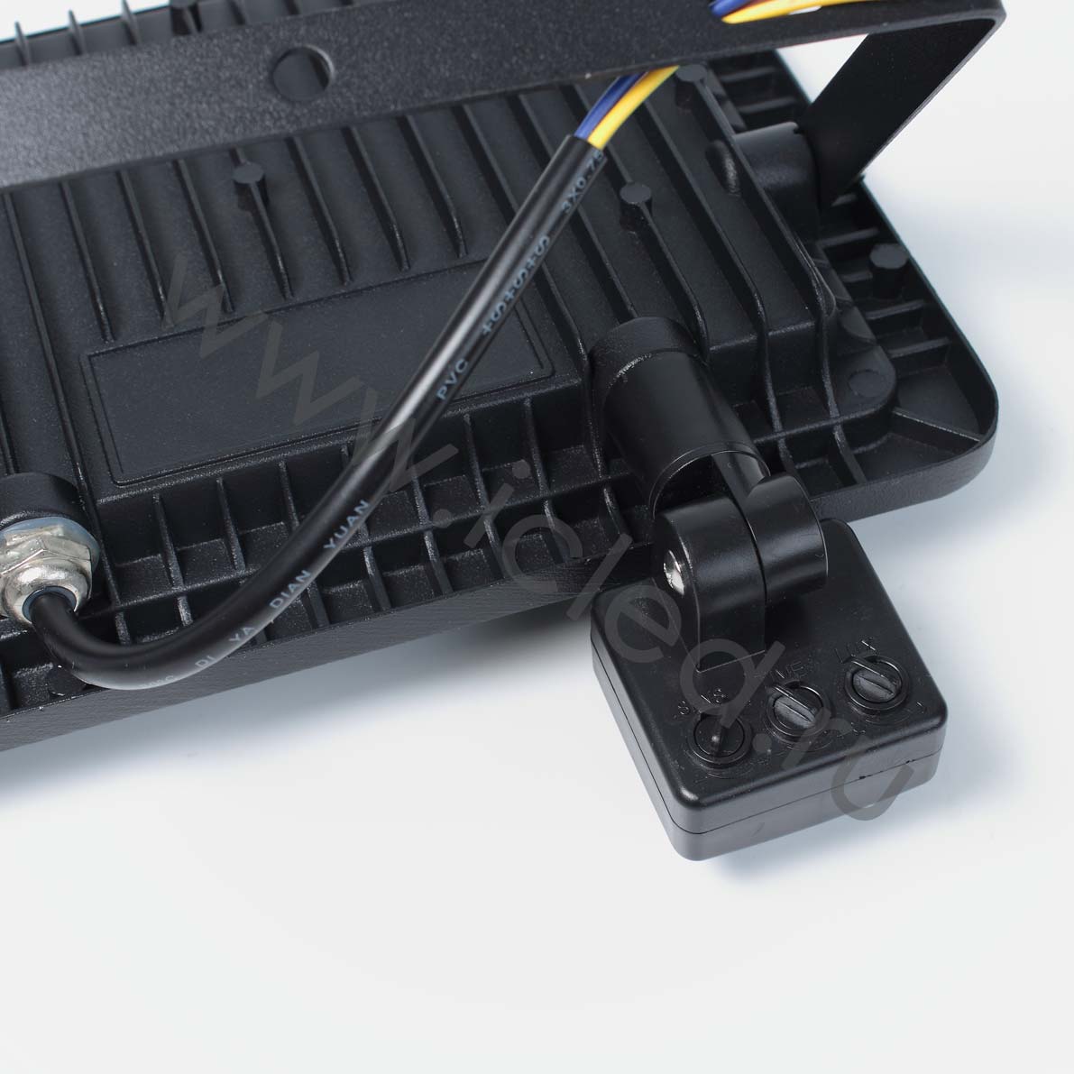 Светодиодный прожектор с датчиком движения. Стандартный корпус. Напряжение 175-265V, мощность 50W, цвет свечения белый 6000-7000K, световой поток 4000Lm, угол свечения 120 градусов, степень защиты IP66. Размеры 207x210x50мм.