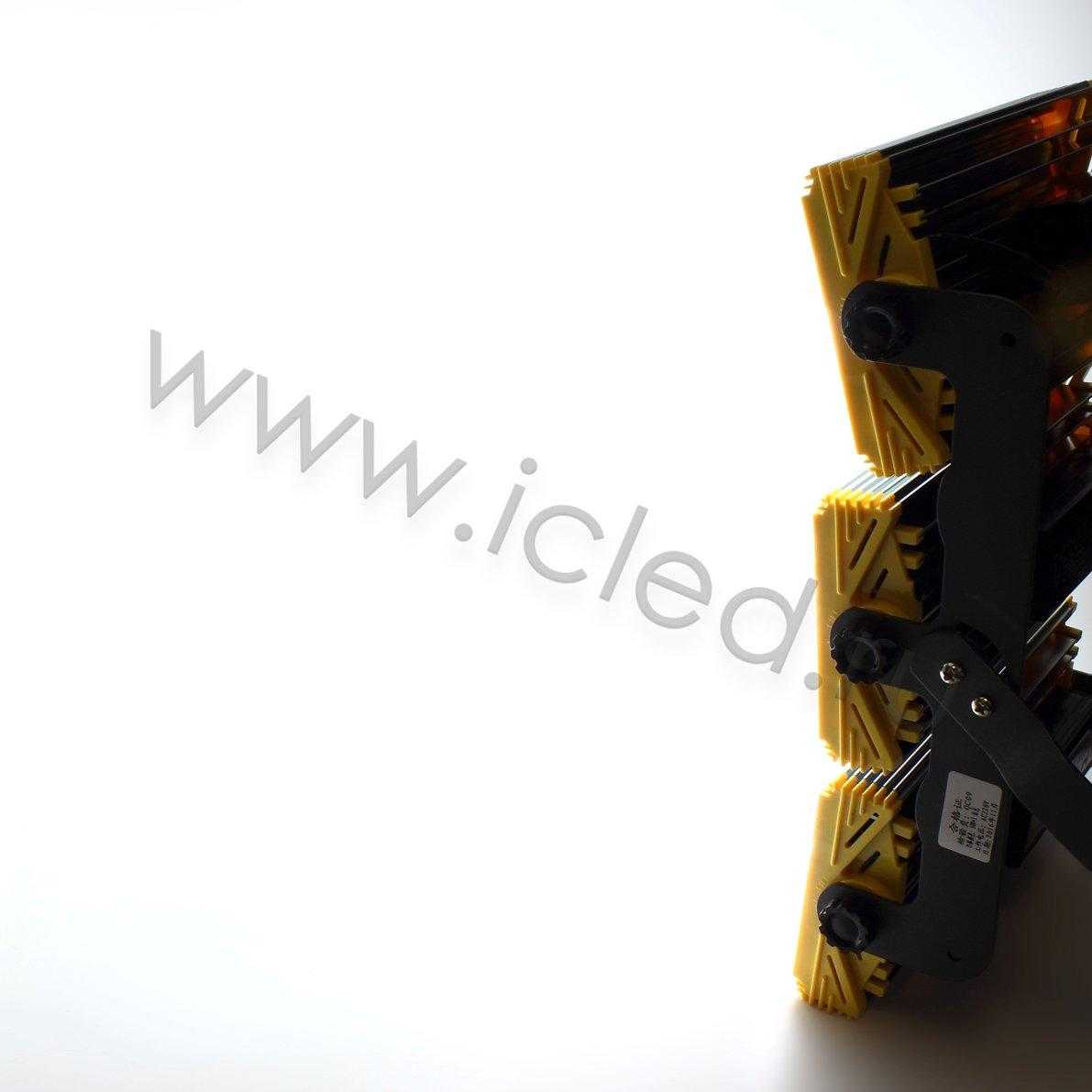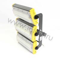 Светодиодный прожектор с возможностью монтажа на потолок или стену. Напряжение 100-264V, мощность 150W, цвет свечения белый 6000К, световой поток 15000Lm, угол свечения 45х150 градусов, степень защиты IP65. Драйвер 3шт: 27-35В, 1,5А. Размеры 235x335x90мм. Вес 3250г.