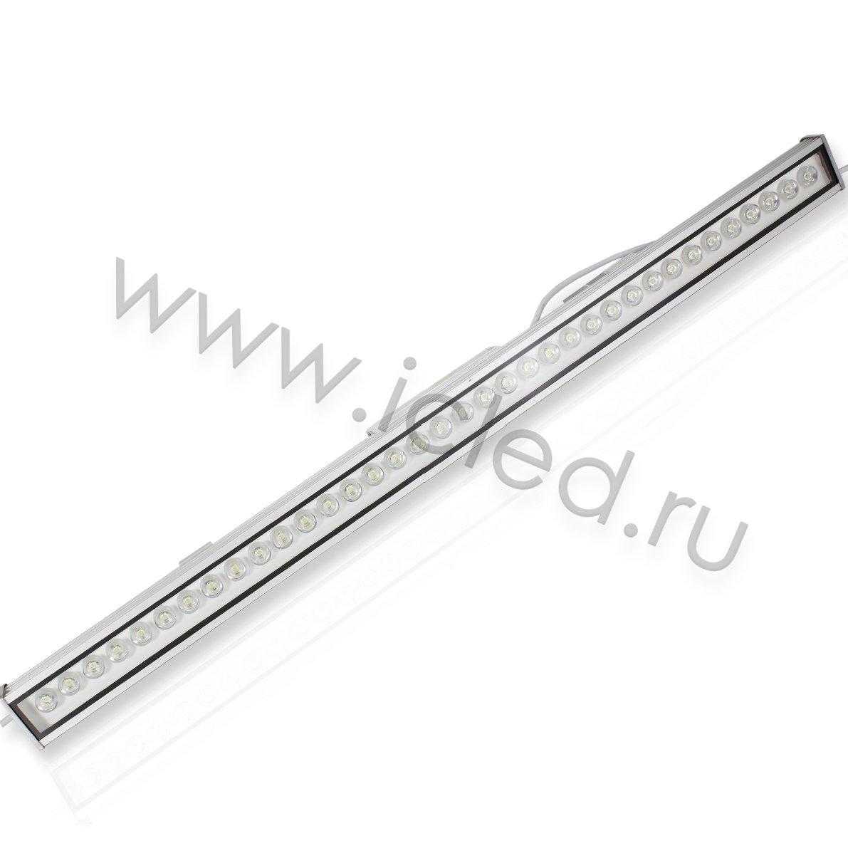 Линейный светодиодный прожектор. Напряжение 220V, 36 штук 1W светодиодов, мощность 36W, цвет свечения белый 6000K, угол свечения 30-45 градусов. Размеры 67x67x1000мм.