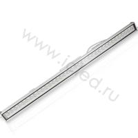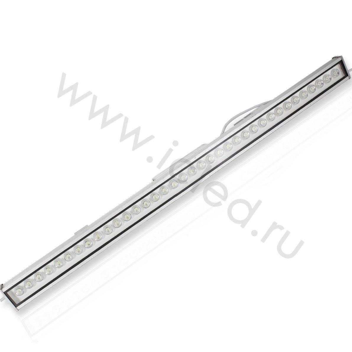 Линейный светодиодный прожектор. Напряжение 220V, 36 штук 1W светодиодов, мощность 36W, цвет свечения теплый белый 3000K, угол свечения 25 градусов, световой поток 3600лм. Размеры 65x70x1000мм. Вес 1800г.