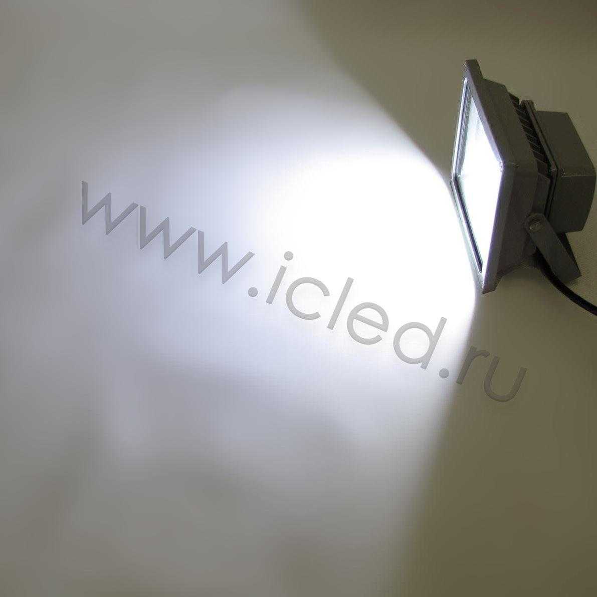 Светодиодный прожектор. Cтандартный корпус. Напряжение 220V, мощность 20W, цвет свечения белый 6000-6500K, световой поток 1600-1800Lm, угол свечения 120x60 градусов, степень защиты IP65. Размеры 180x140x100мм.