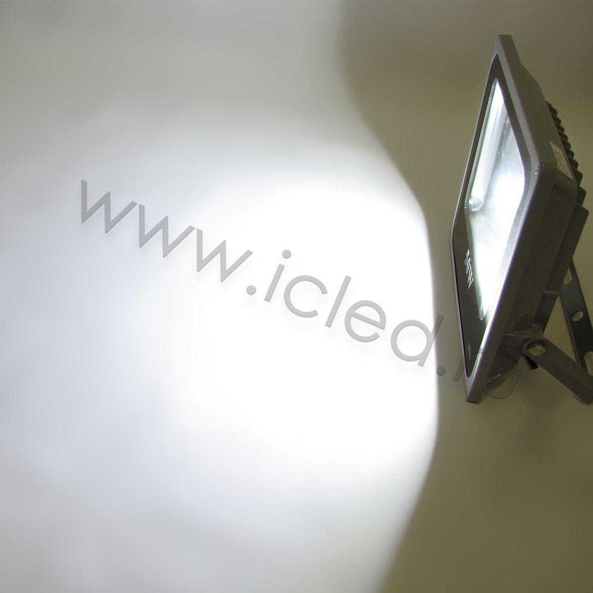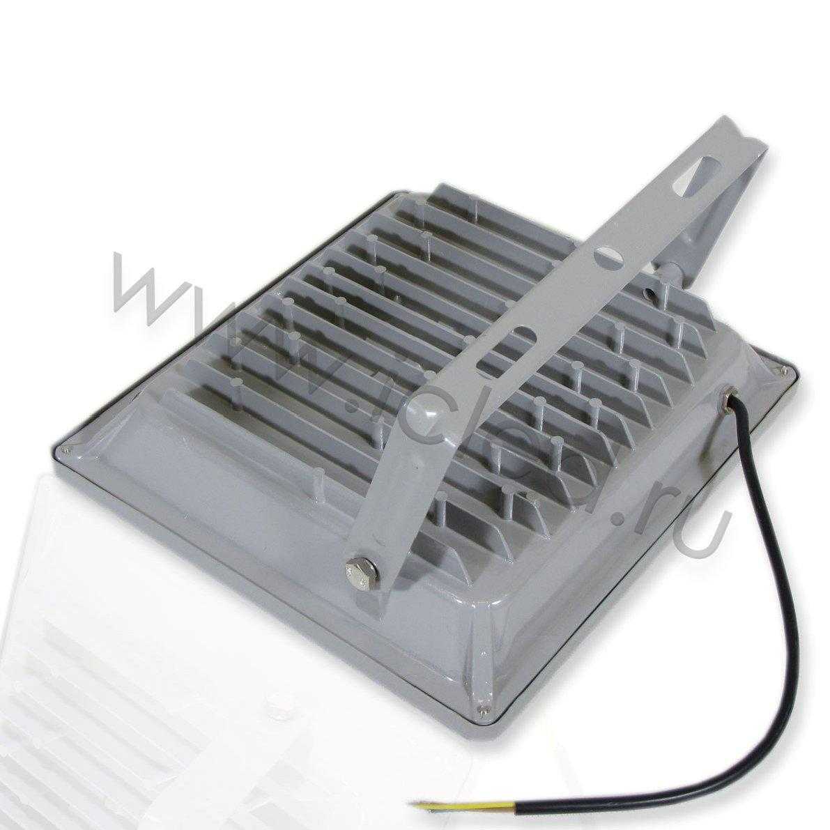 Светодиодный прожектор. SLIM корпус. Напряжение 220V, мощность 50W, цвет свечения белый 6000-6500K, световой поток 4000Lm, угол свечения 120x60 градусов, степень защиты IP66. Размеры 285x275x70мм.
