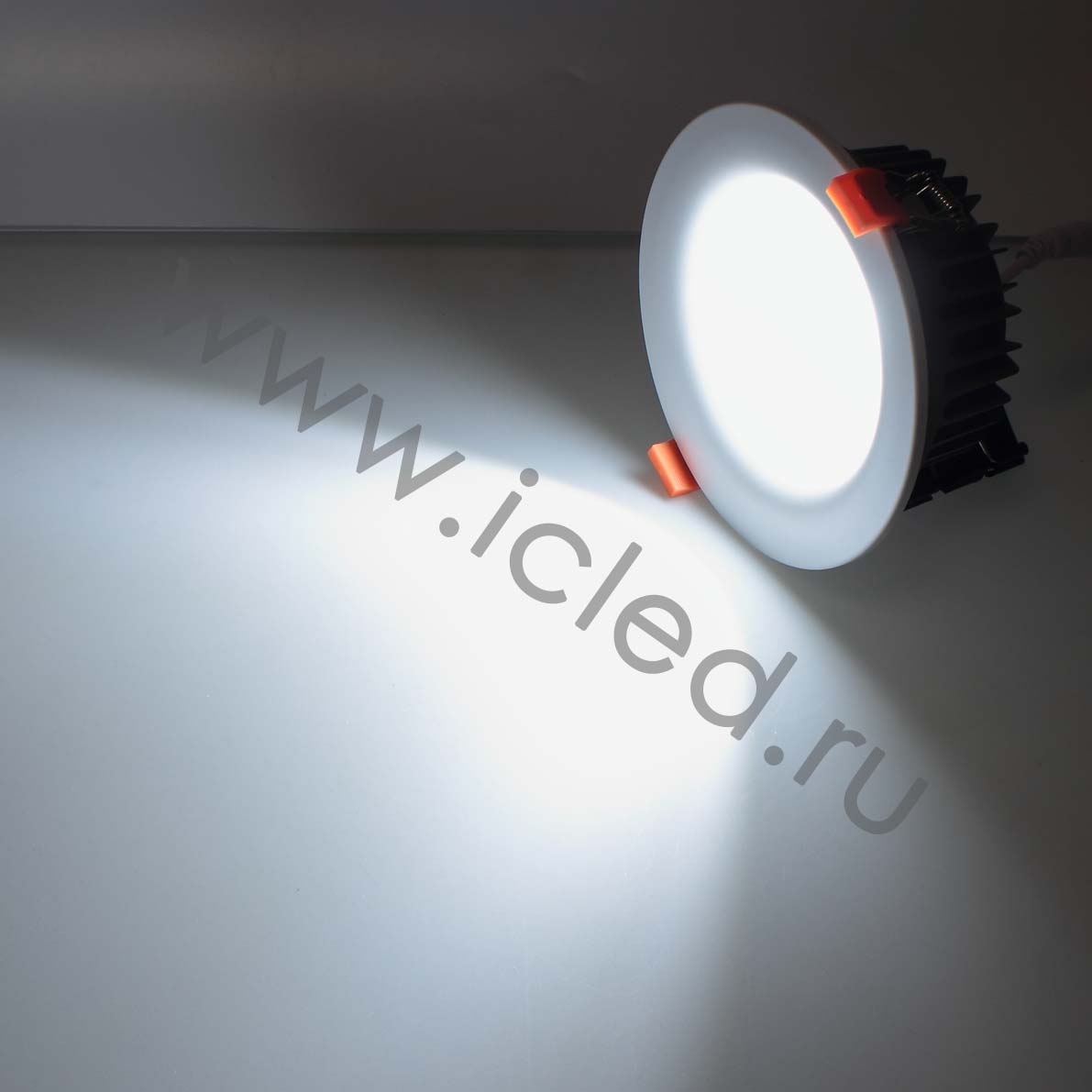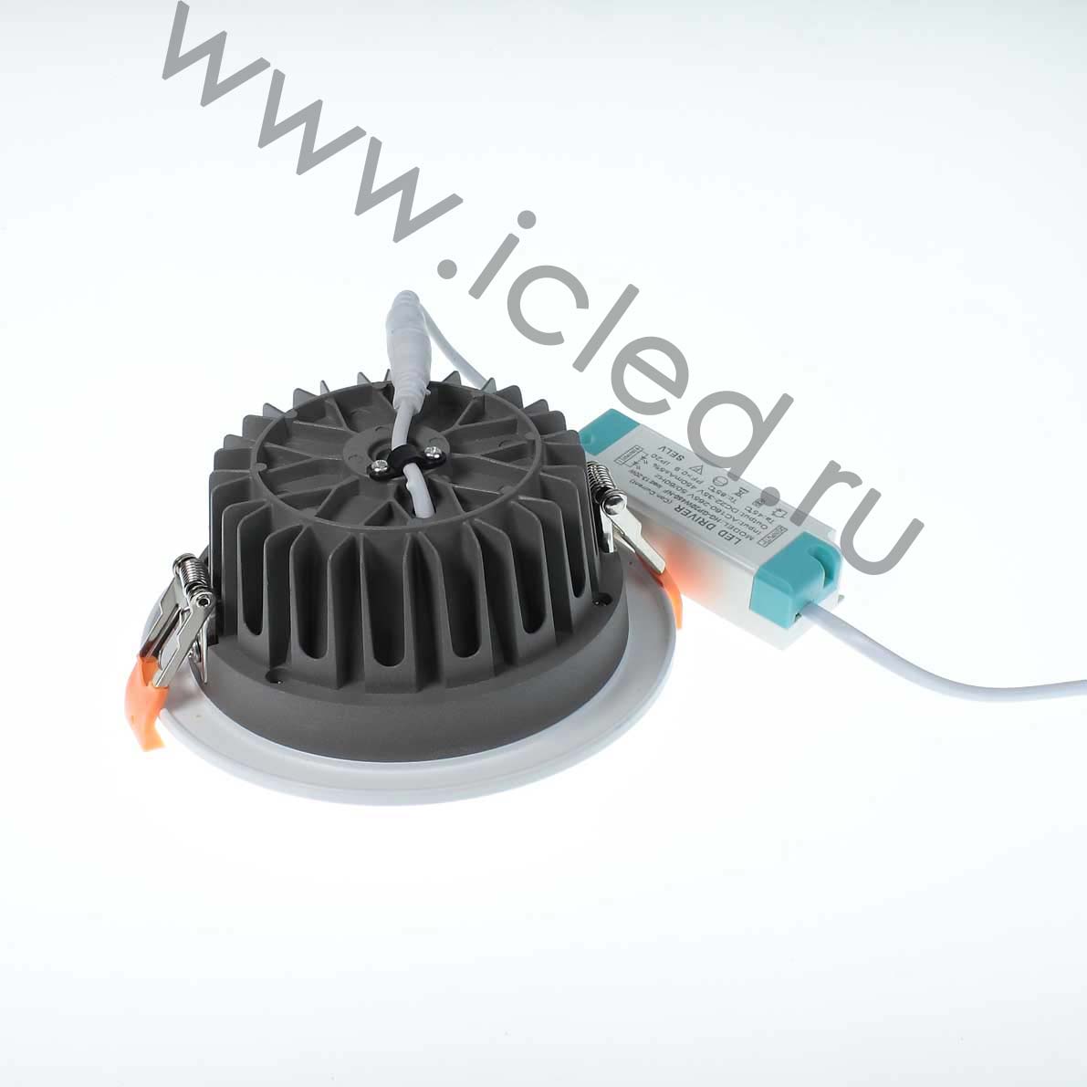 Потолочный светодиодный светильник. Круглый белый корпус с прозрачным рассеивателем. Диаметр 150мм (под отверстие 130мм), высота 70мм. Напряжение 85-265V, мощность 20W, цвет свечения белый 6000-6500K, световой поток 1600Lm, угол свечения 90 градусов. Драйвер 22-35V 450mA. Вес 500гр
