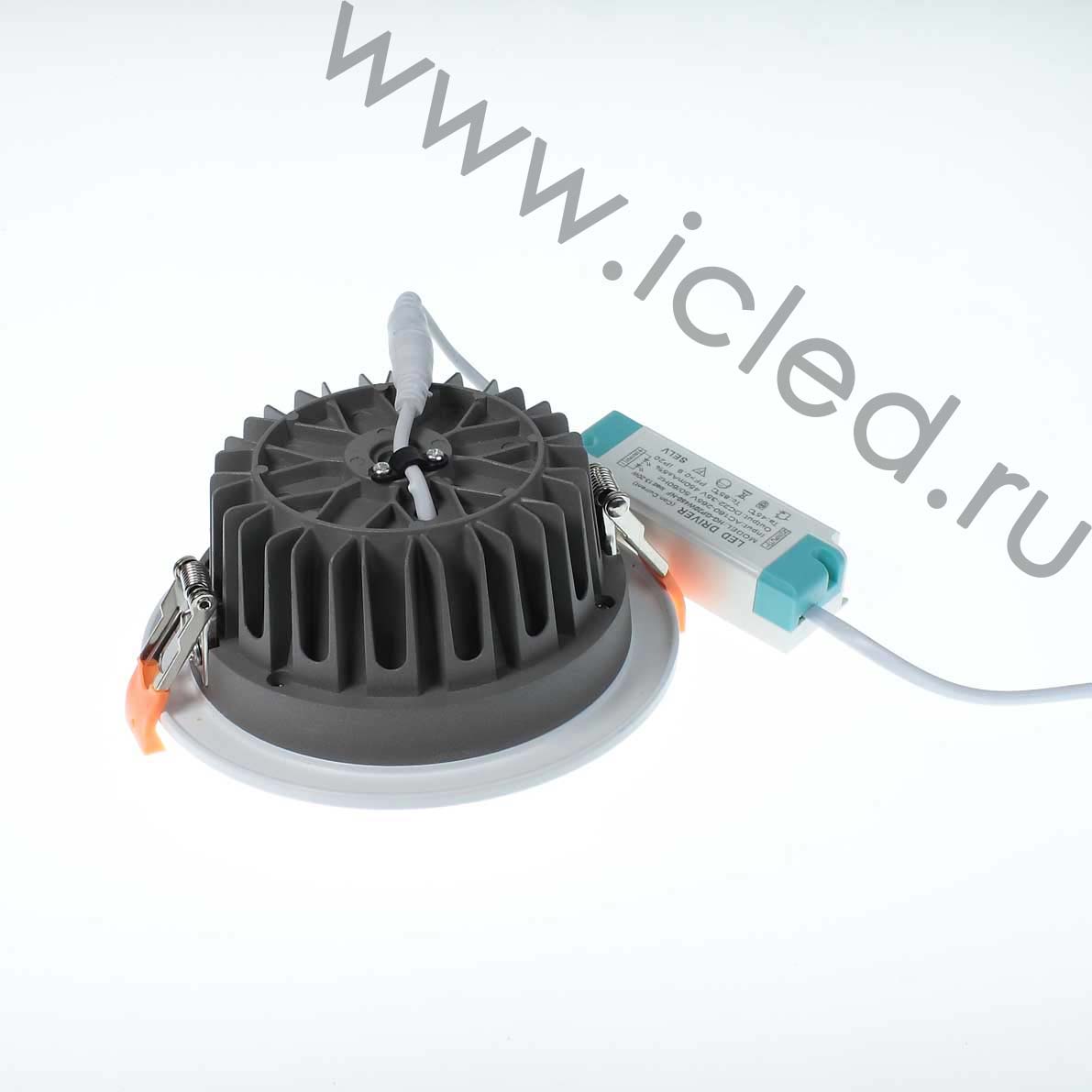 Потолочный светодиодный светильник. Круглый белый корпус с прозрачным рассеивателем. Диаметр 150мм (под отверстие 130мм), высота 70мм. Напряжение 85-265V, мощность 20W, цвет свечения белый 3000-3500K, световой поток 1600Lm, угол свечения 90 градусов. Драйвер 22-35V 450mA. Вес 500гр