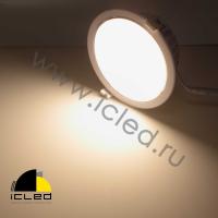 Потолочный светодиодный светильник. Круглый белый корпус с матовым рассеивателем. Диаметр 170мм (под отверстие 150мм), высота 60мм. Напряжение 85-265V, мощность 15W, цвет свечения теплый белый 3000-3500K, световой поток 1200Lm, угол свечения 120 градусов. Драйвер 30-70V 300mA. Вес 520гр