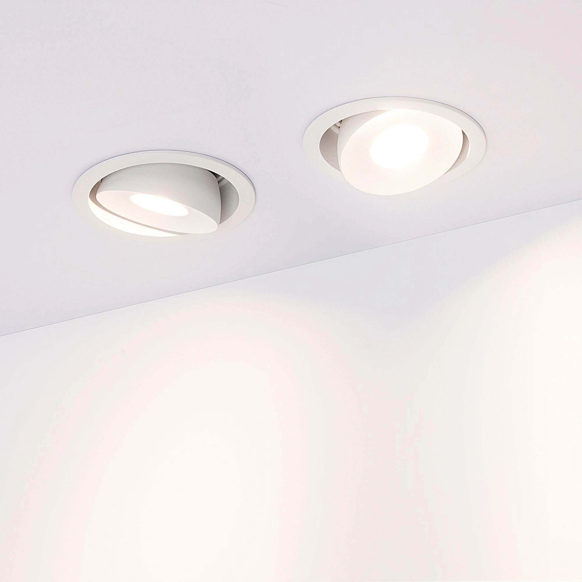 Встраиваемый карданный поворотный светильник с высоким индексом цветопередачи CRI>90 предназначен для создания качественного направленного освещения. Поворотный механизм светильника позволяет с лёгкостью регулировать направление пучка света под углом 45 градусов, создавая концентрацию на определенной зоне. Особая конфигурация корпуса из алюминия оригинально смотрится в интерьере и позволяет эффективно отводить тепло. Светильник с узким углом рассеивания и световым потоком 630 лм отлично подходит для локальной акцентной подсветки витрин, прилавков магазинов, бутиков и стендов выставочных залов. Легко устанавливается с помощью пружин в монтажное отверстие потолка. В комплекте поставляется драйвер, что позволяет безопасно и быстро подключать светильник напрямую к сети переменного тока 230 В. Диммирование возможно при замене штатного драйвера.