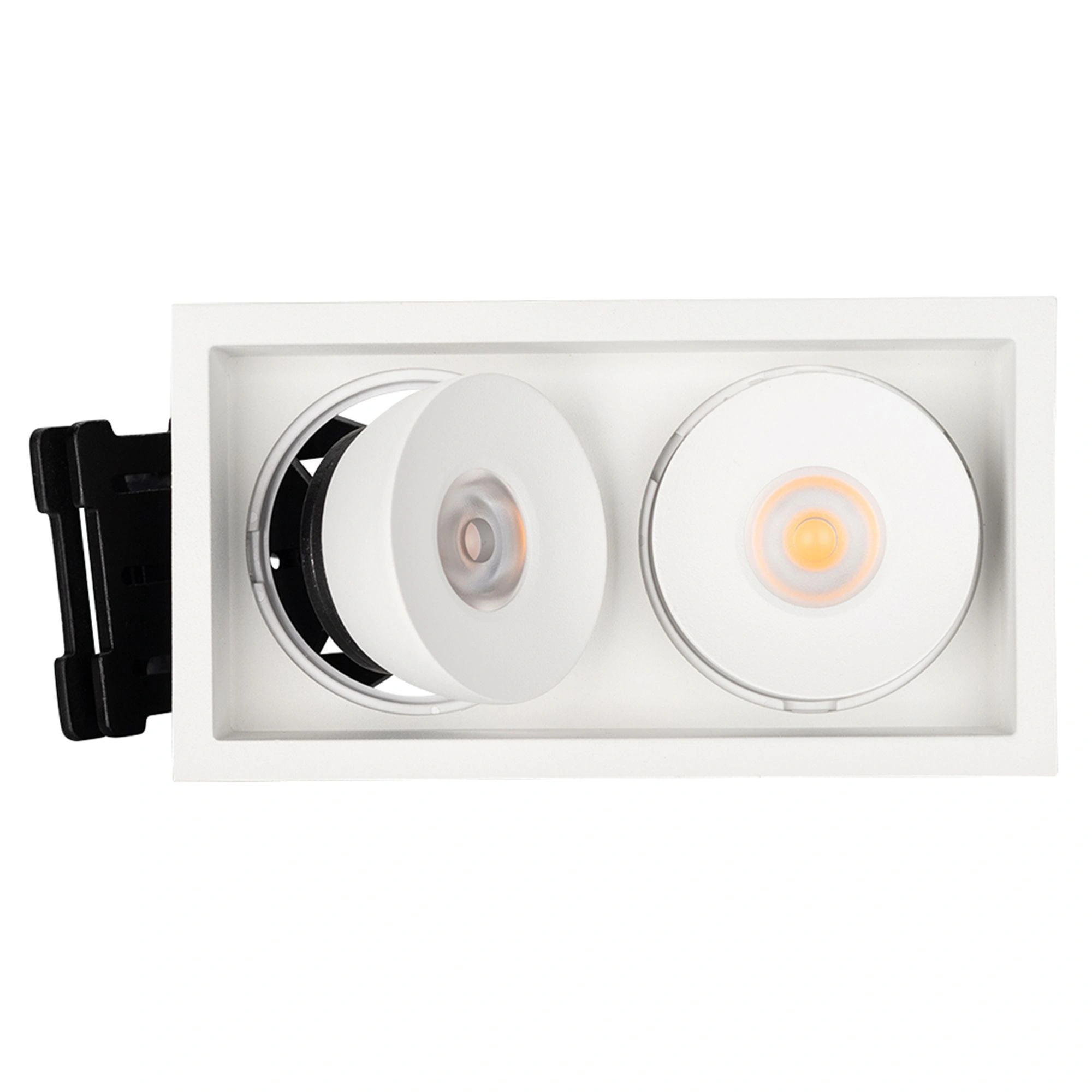 Встраиваемый карданный поворотный светильник с высоким индексом цветопередачи CRI>90 предназначен для создания качественного направленного освещения. Поворотный механизм светильника позволяет с лёгкостью регулировать направление пучка света под углом 45 градусов, создавая концентрацию на определенной зоне. Особая конфигурация корпуса из алюминия оригинально смотрится в интерьере и позволяет эффективно отводить тепло. Светильник с узким углом рассеивания и световым потоком 1260 лм отлично подходит для локальной акцентной подсветки витрин, прилавков магазинов, бутиков и стендов выставочных залов. Легко устанавливается с помощью пружин в монтажное отверстие потолка. В комплекте поставляется драйвер, что позволяет безопасно и быстро подключать светильник напрямую к сети переменного тока 230 В. Диммирование возможно при замене штатного драйвера.