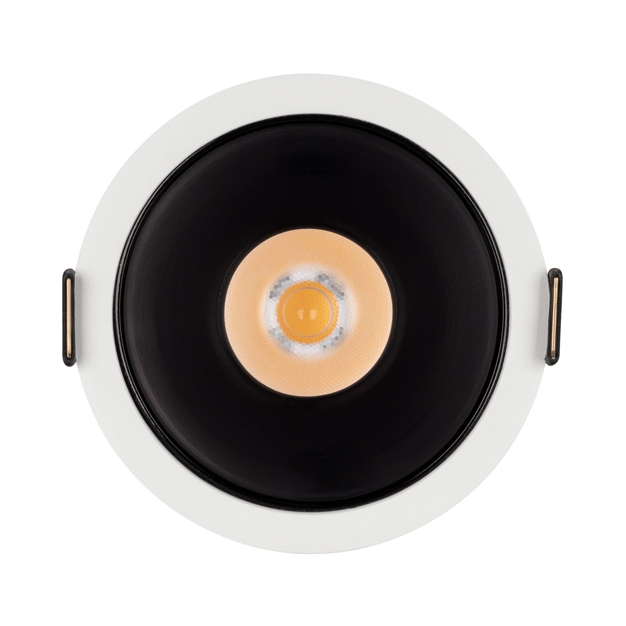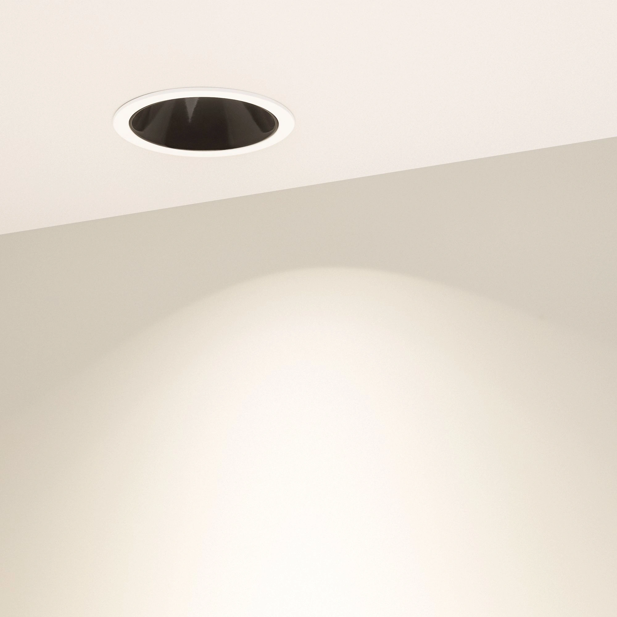 Встраиваемый светильник даунлайт с высоким индексом цветопередачи CRI>90 обеспечивает качественное освещение с точной передачей цветовых оттенков. Алюминиевый круглый корпус с декоративным рефлектором является интересным дизайнерским решением, создавая эффект света из ниоткуда - Darklight. Низкий коэффициент дискомфорта делает освещение очень комфортным для глаз. Защита корпуса на уровне IP20, cветовая эффективность 86 лм/Вт и узкий угол излучения 30 градусов подходят для направленного освещения торговых, офисных, жилых помещений, где отсутствует контакт с водой или другими жидкостями. Светильник легко устанавливается с помощью пружин в монтажное отверстие. Драйвер поставляется в комплекте, позволяя быстро подключить светильник напрямую к сети переменного тока 230 В. Низкая пульсация обеспечивает равномерное освещение без мерцания. Диммирование возможно при замене штатного драйвера.