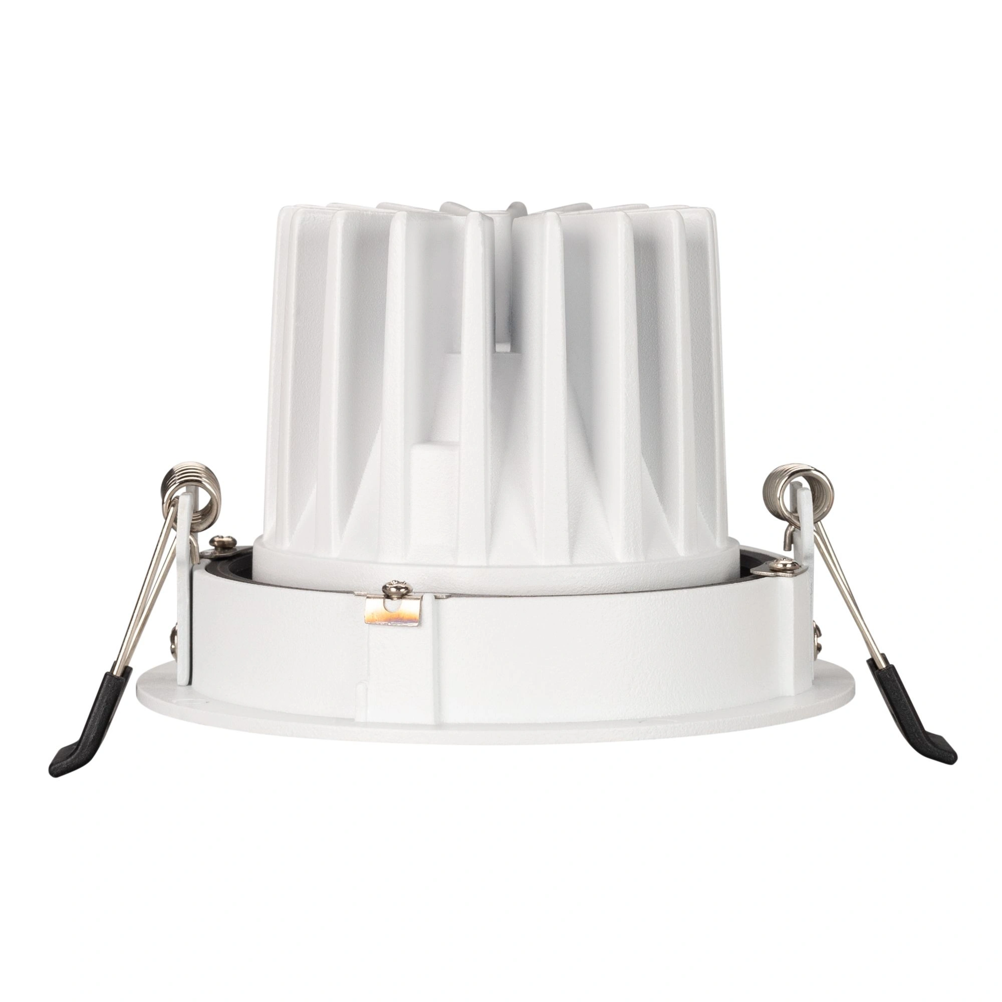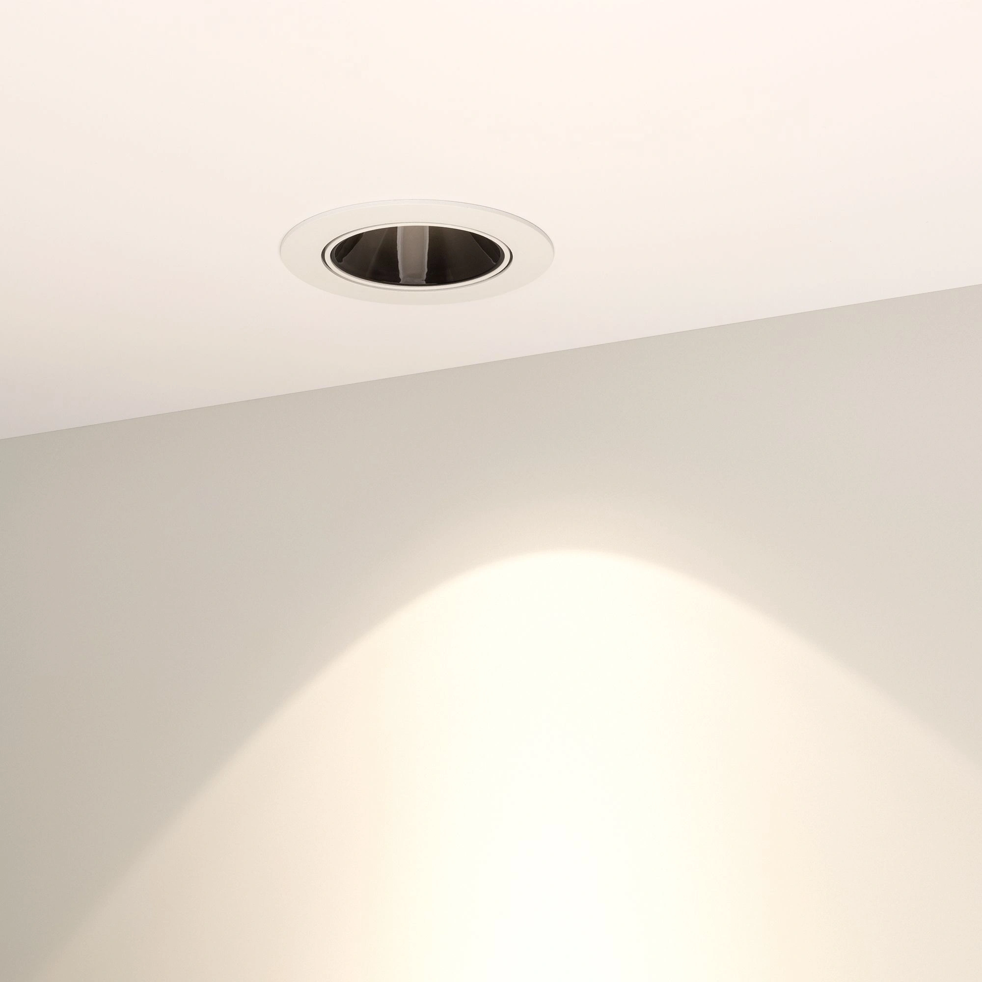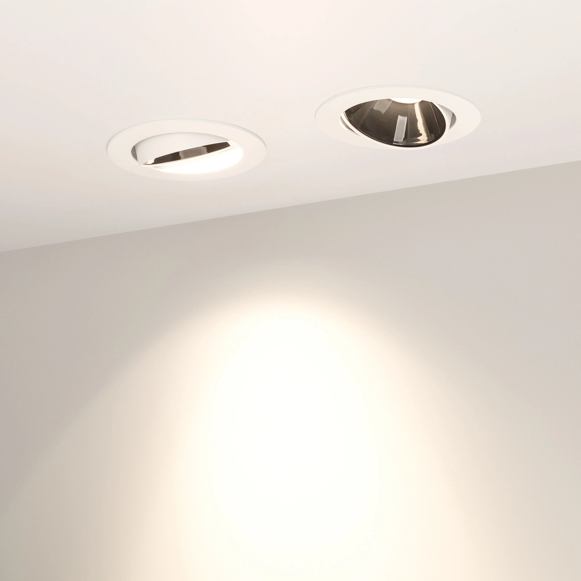 Встраиваемый поворотный светильник FORECAST обладает низким коэффициентом дискомфорта UGR<16, благодаря чему достигается комфортный индекс освещенности. Светильник с цветопередачей CRI>90 обеспечивает достоверную передачу цветов и оттенков. Световой поток 890 лм и узкий угол излучения 32 градуса , защита корпуса на уровне IP20 предназначены для направленного освещения торговых, офисных, жилых и других помещений, в которых отсутствует контакт с водой. Световой модуль может поворачиваться вокруг вертикальной оси на 355 и отклоняться от горизонтали на 30 градусов, позволяя мгновенно менять направление света и расставлять световые акценты. Светильник легко устанавливается с помощью пружин в монтажное отверстие потолка. Драйвер поставляется в комплекте для безопасного и быстрого подключения к сети переменного тока 230 В. Пульсация менее 2% обеспечивает равномерное освещение без мерцания. Диммирование возможно при замене штатного драйвера.