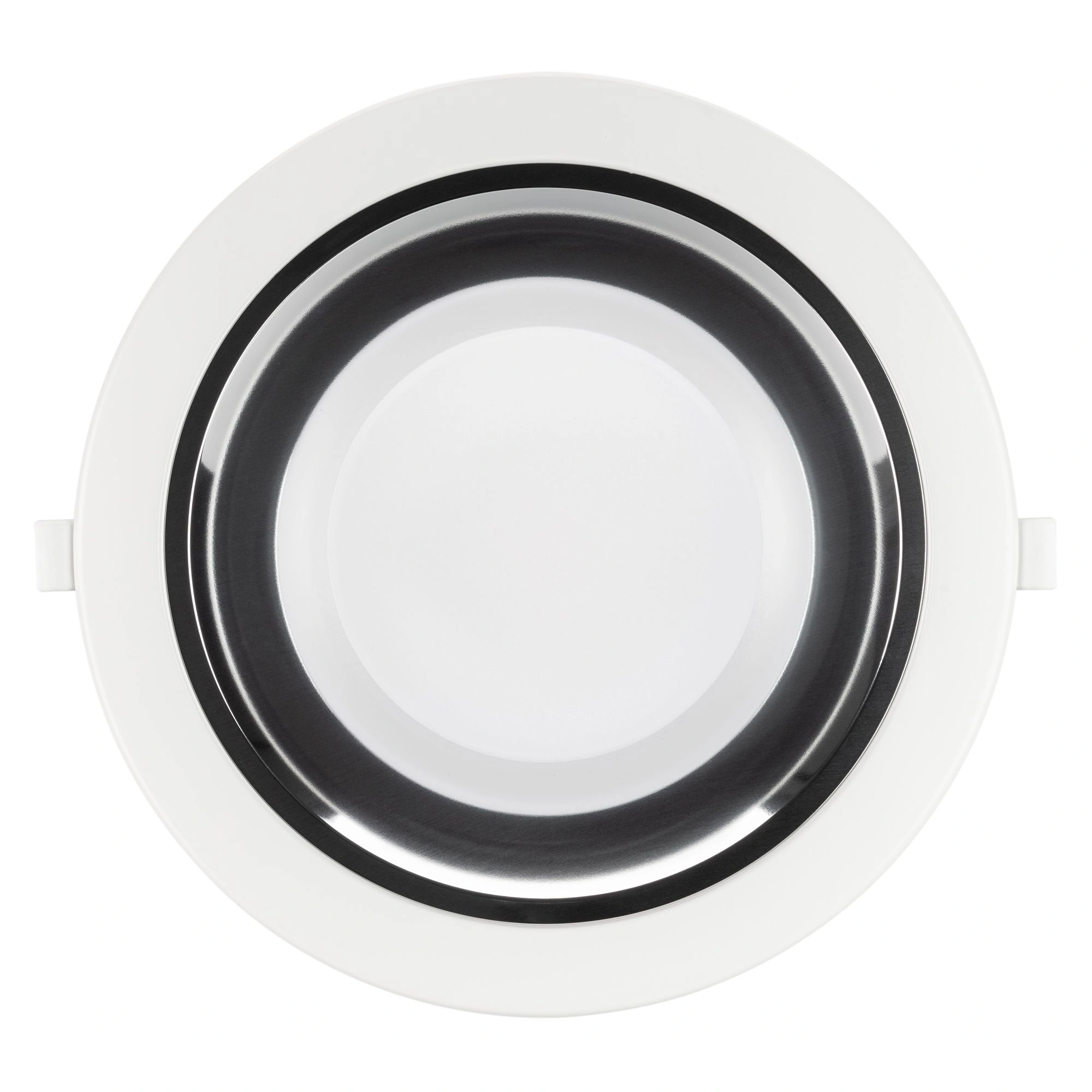 Встраиваемый светильник IM-STORM-R230-28W Day4000-MIX (WH, 80 deg, 230V) мощностью 28 Вт с изменяемой цветовой температурой 3000/4000/6000 К. Выбор цвета свечения происходит с помощью удобного переключателя на корпусе светильника. Индекс цветопередачи CRI>80 обеспечивает точное восприятие цветовых оттенков. Лаконичный алюминиевый корпус размером 232×83 мм будет гармонично смотреться в любом интерьере. Светильник с высокой светоотдачей, световым потоком 3000 лм и углом излучения 80° обеспечивает равномерное освещение без мерцания и видимости точек светодиодов. Светильник встраивается в установочное отверстие Ø195–210 мм с помощью удобных креплений. Светильник поставляется в комплекте с драйвером, что дает возможность быстро и безопасно подключать светильник напрямую к сети 230 В. Светильник предназначен для освещения торговых, офисных, жилых и других помещений, в которых отсутствует контакт с водой.