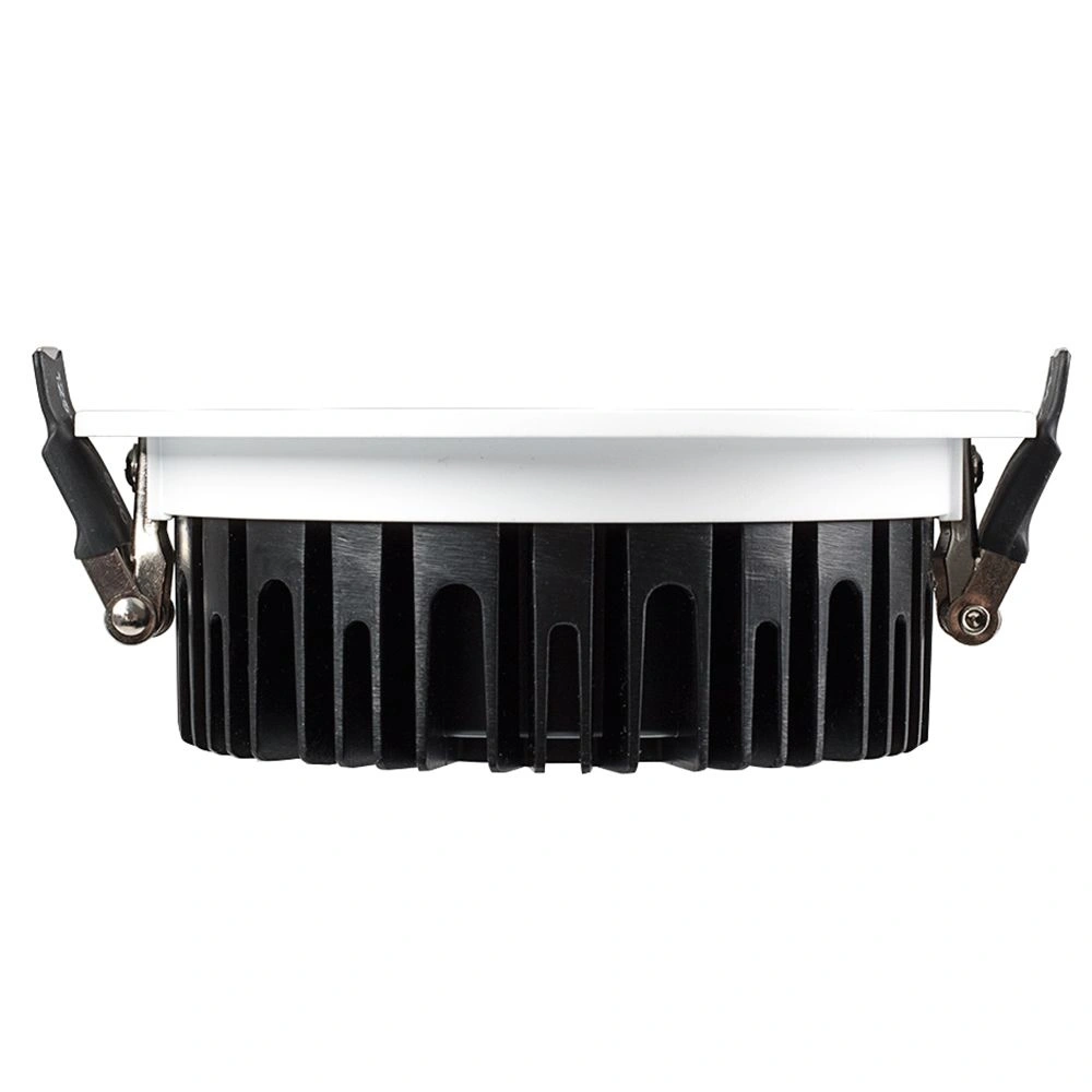 Встраиваемый круглый светильник c индексом CRI>80 обеспечивает отличную цветопередачу и равномерное освещение без мерцания. Особая конфигурация алюминиевого корпуса позволяет эффективно отводить тепло и продлевает срок службы светодиодов. Белый цвет корпуса будет гармонично смотреться в любом интерьере. Уникальный рассеиватель придает модели оригинальный внешний вид. Светильник с широким углом рассеивания 110 градусов и эффективностью 90 лм/Вт обеспечивает качественный свет. Светильник легко устанавливается с помощью пружин в монтажное отверстие. В комплекте поставляется драйвер, что позволяет безопасно и быстро подключать светильник напрямую к сети переменного тока 230 В. Корпус с защитой на уровне IP44 предотвращает попадание пыли, влаги, а также брызг воды. Имеется возможность диммирования при замене драйвера. Предназначен для основного и локального освещения в жилых, коммерческих и общественных помещениях.