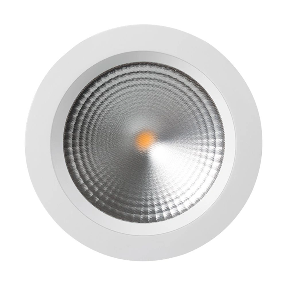 Встраиваемый круглый светильник c индексом CRI>80 обеспечивает отличную цветопередачу и равномерное освещение без мерцания. Особая конфигурация алюминиевого корпуса позволяет эффективно отводить тепло и продлевает срок службы светодиодов. Белый цвет корпуса будет гармонично смотреться в любом интерьере. Уникальный рассеиватель придает модели оригинальный внешний вид. Светильник с широким углом рассеивания 110 градусов и эффективностью 90 лм/Вт обеспечивает качественный свет. Светильник легко устанавливается с помощью пружин в монтажное отверстие. В комплекте поставляется драйвер, что позволяет безопасно и быстро подключать светильник напрямую к сети переменного тока 230 В. Корпус с защитой на уровне IP44 предотвращает попадание пыли, влаги, а также брызг воды. Имеется возможность диммирования при замене драйвера. Предназначен для основного и локального освещения в жилых, коммерческих и общественных помещениях.