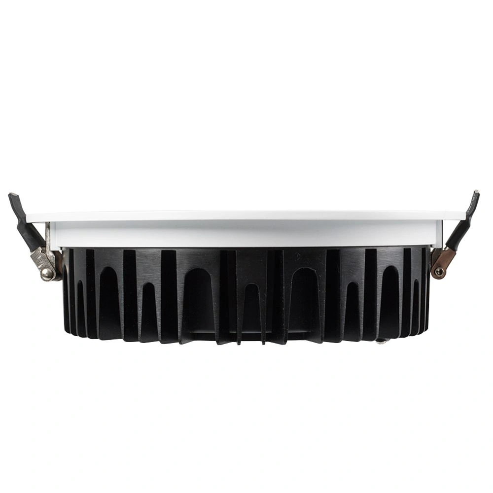 Встраиваемый круглый светильник c индексом CRI>80 обеспечивает отличную цветопередачу и равномерное освещение без мерцания. Особая конфигурация алюминиевого корпуса позволяет эффективно отводить тепло и продлевает срок службы светодиодов. Белый цвет корпуса будет гармонично смотреться в любом интерьере. Уникальный рассеиватель придает модели оригинальный внешний вид. Светильник с широким углом рассеивания 110 градусов и эффективностью 90 лм/Вт обеспечивает качественный свет. Светильник легко устанавливается с помощью пружин в монтажное отверстие. В комплекте поставляется драйвер, что позволяет безопасно и быстро подключать светильник напрямую к сети переменного тока 230 В. Корпус с защитой на уровне IP44 предотвращает попадание пыли, влаги, а также брызг воды. Имеется возможность диммирования при замене драйвера. Предназначен для основного и локального освещения в жилых, коммерческих и общественных помещениях.