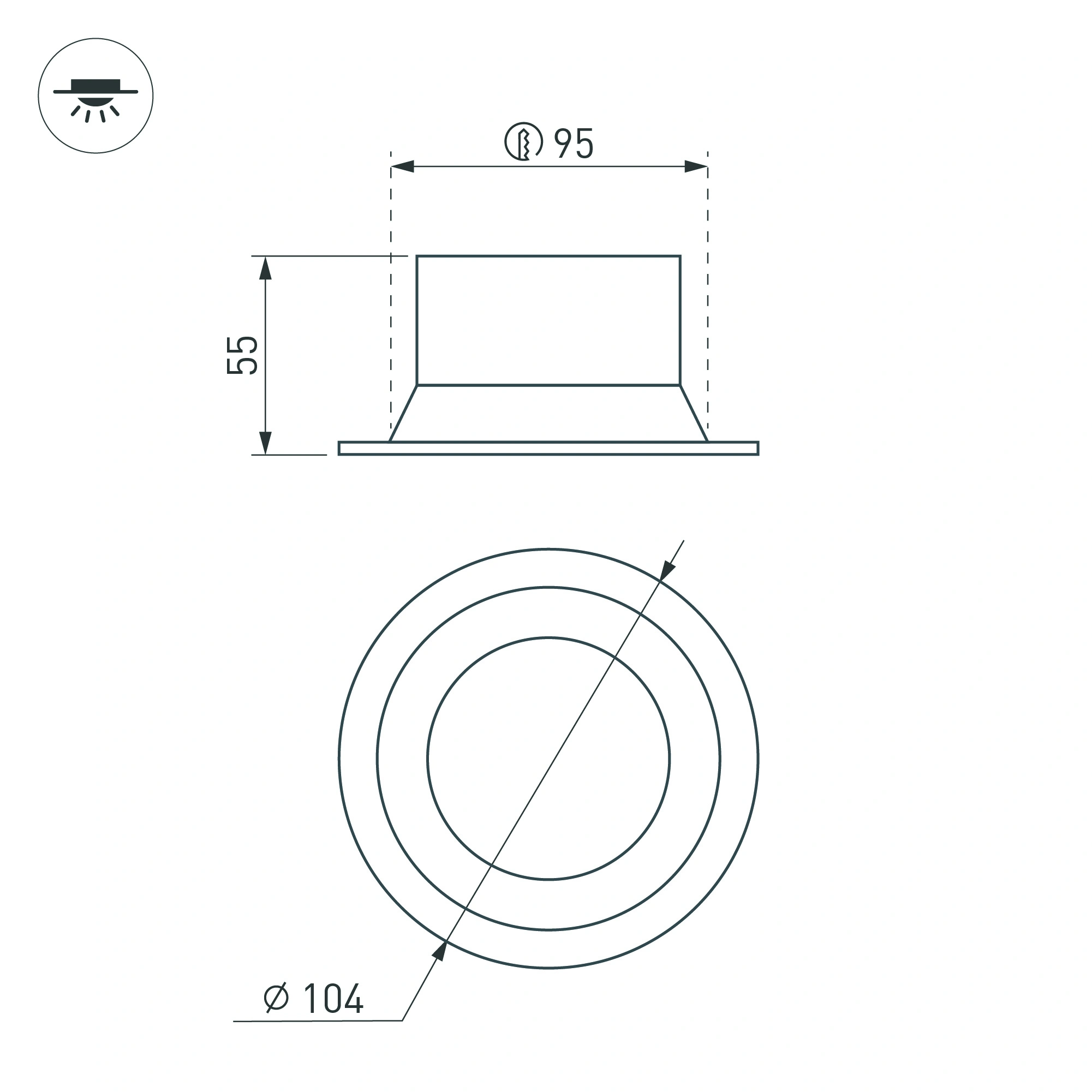 Встраиваемый круглый светильник c высоким индексом цветопередачи CRI>90 обеспечивает качественное освещение с точной передачей цветовых оттенков. Алюминиевый корпус черного цвета с утопленным светодиодным модулем является интересным дизайнерским решением, создавая эффект света из ниоткуда, делая освещение очень комфортным для глаз. Особая конфигурация корпуса позволяет эффективно отводить тепло и продлевает срок службы светодиодов. Светильник с широким углом рассеивания 85 градусов и светоотдачей 56 лм/Вт создает равномерное свечение без мерцаний. Легко устанавливается с помощью пружин в монтажное отверстие. Драйвер поставляется в комплекте и позволяет быстро подключать светильник напрямую к сети переменного тока 230 В. Диммирование возможно при замене штатного драйвера. Предназначен для основного освещения в жилых, коммерческих, торговых помещениях, где отсутствует контакт с водой.