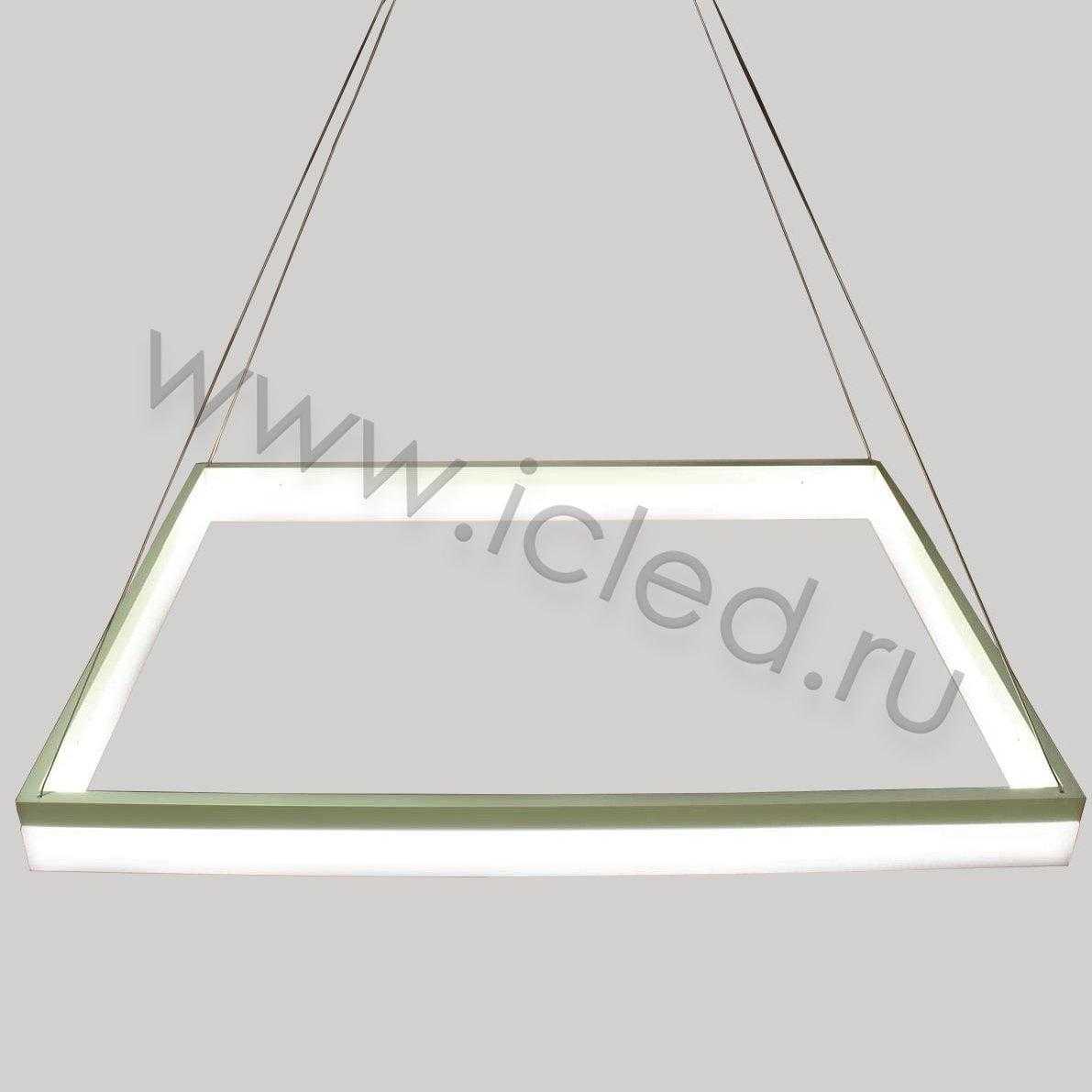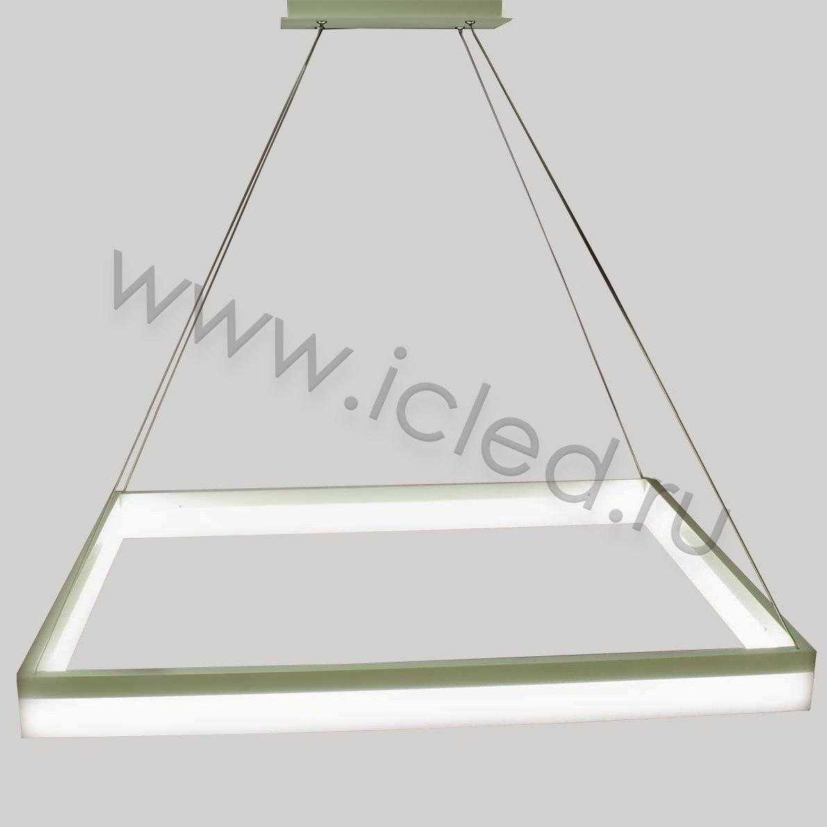 Светодиодная люстра. Прямоугольный белый корпус. Входное напряжение 180-240V, мощность 46W. Цвет свечения дневной белый 4000-4500К, световой поток 3450Lm, угол свечения 120 градусов. Размеры 800х600x100мм. Длина подвеса регулируется. Длина подвеса 1000мм. Вес 5300гр.