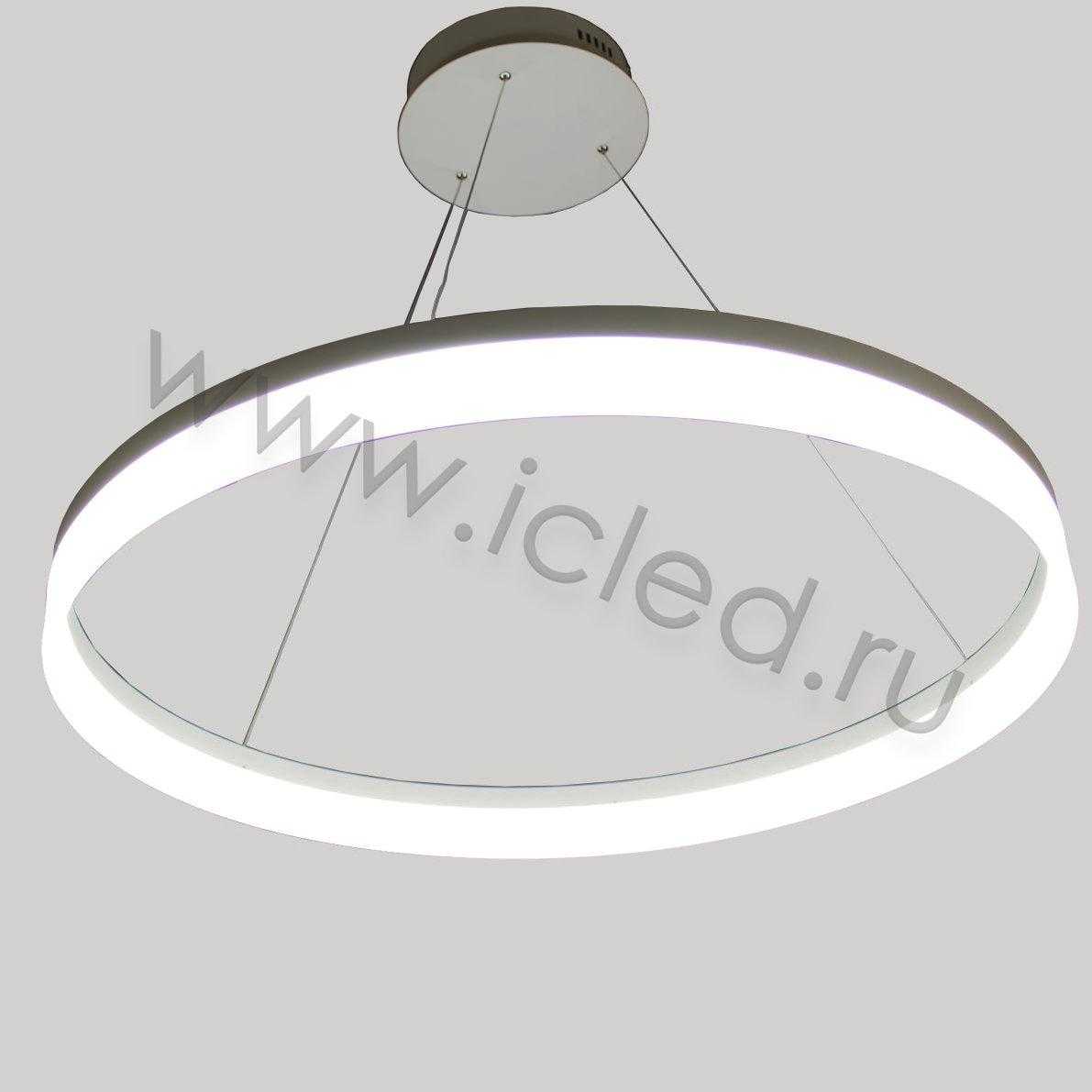 Светодиодная люстра. Круглый белый корпус. Входное напряжение 180-240V, мощность 48W. Цвет свечения дневной белый 4000-4500К, световой поток 3500Lm, угол свечения 120 градусов. Размеры 840x840x100мм. Длина подвеса регулируется. Максимальная высота с подвесом 1200мм. Диаметр 800мм.