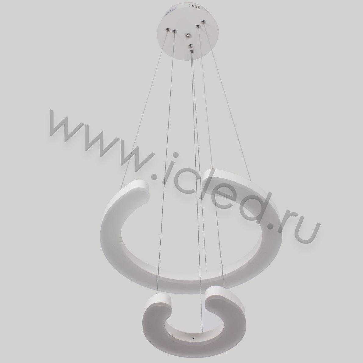 Светодиодная люстра. Круглый белый корпус. Входное напряжение 85-265V, мощность 60W. Цвет свечения дневной белый 4000-4500К, световой поток 4500Lm, угол свечения 120 градусов. Диаметр кругов: 190мм, 370мм. Диаметр корпуса крепления 150мм. Длина подвесов регулируется. Длина подвесов 1500мм. Вес 4200гр.