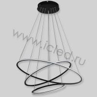 Светодиодная люстра. Три кольца (диаметр 600, 800, 1000мм), свечение наружу. Входное напряжение 220V, мощность 144W. Цвет свечения дневной белый 4000-4500К, световой поток 10800Lm, угол свечения 120 градусов. Длина подвеса 1400мм регулируемая.