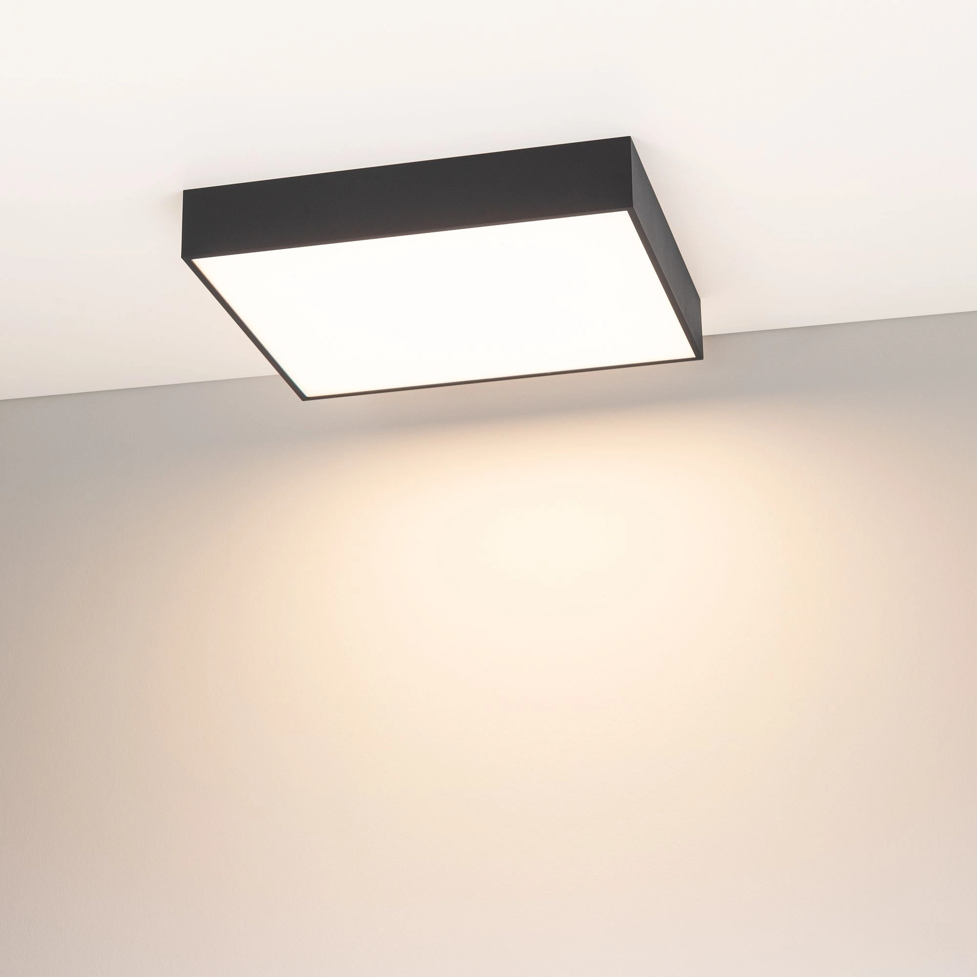 Интерьерный накладной светильник SP-QUADRO-S400x400-40W Warm3000 (BK, 120 deg, 230V) мощностью 40 Вт с белым теплым цветом свечения (3000К), световым потоком 3200 лм и высокой световой эффективностью 80 лм/Вт предназначен для создания яркого и качественного освещения в интерьере. Высокий индекс цветопередачи CRI>90 удовлетворяет требованиям большинства проектов, так как обеспечивает отличную передачу цветов. Угол освещения составляет 120°, что подходит для основного освещения помещений. Матовый экран светильника сделан из поликарбоната и обеспечивает равномерное освещение без видимости точек светодиодов. Размеры корпуса в форме квадрата и возможность монтажа накладным способом позволяют легко монтировать и совмещать модель с различными интерьерами. Корпус изготовлен из окрашенного алюминия черного цвета, что придает светильнику не только современный стиль, но и обеспечивает защиту от пыли на уровне IP40. Светильник предназначен для применения внутри помещений, где нет контакта с водой или другими жидкостями. Снабжен встроенным драйвером, что дает возможность безопасно и быстро подключать его напрямую к сети 230В. Пульсация менее 5% обеспечивает комфортное освещение без мерцания. Идеально подходит для освещения и декоративного оформления жилых, офисных и других помещений.