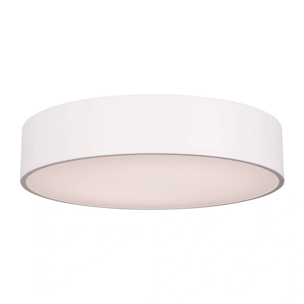 Накладной интерьерный светильник. Мощность 35 Вт, св. поток 3150 лм, 90 лм/Вт, теплый 3000 K, CRI>80, угол 120°, напряжение питания 230 В. Белый круглый корпус из алюминия, степень защиты IP20. Размер: диаметр 500 мм, высота 100 мм. Монтаж накладной. Драйвер 30-42 В, 950 мА, пульсация <5%.