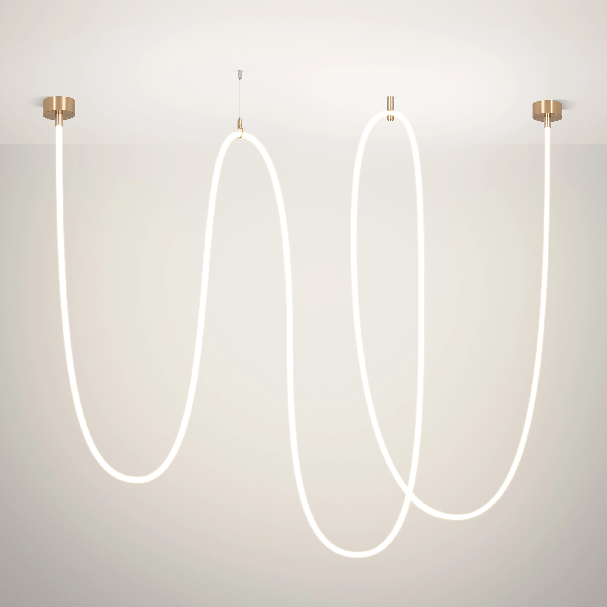 Подвесной светодиодный светильник SP-TROPIC-SURFACE-R18-L10000-110W Day4000 (GD, 360 deg, 230V) мощностью 110 Вт с уникальным корпусом из гибкого неона диаметром 18 мм. Высокая световая эффективность 70 лм/Вт, индекс цветопередачи CRI>90, световой поток 7455 лм и сверх широкий угол излучения 360° обеспечивают качественное освещение с точной передачей цветовых оттенков, что удовлетворяет требованиям большинства проектов. Силиконовый материал неона обеспечивает мягкое, равномерное освещение теплого белого цвета (3000 К). Тип монтажа - накладной. Гибкая форма, использование подвесов и креплений (приобретаются отдельно) позволяют воплотить разные идеи декоративного оформления. Корпус с защитой от пыли IP20 подходит для установки внутри помещений, где нет контакта с водой или другими жидкостями. Комбинируя светильники разного размера данной серии и располагая их на разном уровне, можно создавать оригинальные световые композиции. Встроенный драйвер позволяет безопасно и быстро подключать светильник напрямую к сети с напряжением питания 230 В. Пульсация менее 5% обеспечивает комфортное освещение без мерцания. Предназначен для основного и декоративного освещения в жилых, офисных, торговых помещениях, ресторанах, кафе и др.