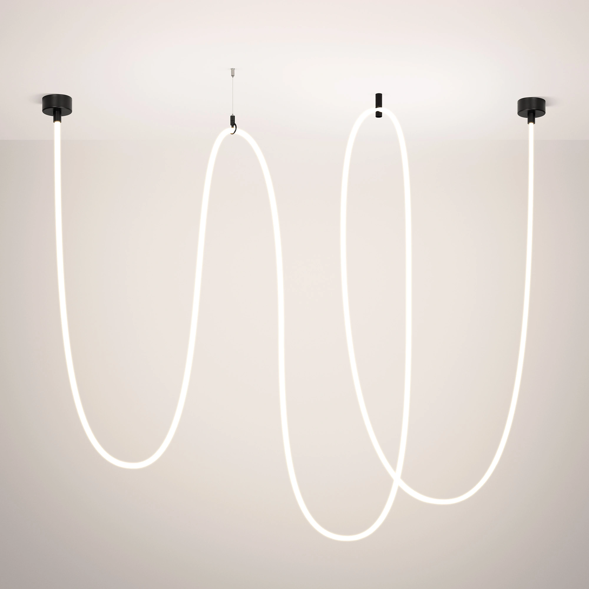Подвесной светодиодный светильник SP-TROPIC-SURFACE-R18-L10000-110W Warm3000 (BK, 360 deg, 230V) мощностью 110 Вт с уникальным корпусом из гибкого неона диаметром 18 мм. Высокая световая эффективность 70 лм/Вт, индекс цветопередачи CRI>90, световой поток 5960 лм и сверх широкий угол излучения 360° обеспечивают качественное освещение с точной передачей цветовых оттенков, что удовлетворяет требованиям большинства проектов. Силиконовый материал неона обеспечивает мягкое, равномерное освещение теплого белого цвета (3000 К). Тип монтажа - накладной. Гибкая форма, использование подвесов и креплений (приобретаются отдельно) позволяют воплотить разные идеи декоративного оформления. Корпус с защитой от пыли IP20 подходит для установки внутри помещений, где нет контакта с водой или другими жидкостями. Комбинируя светильники разного размера данной серии и располагая их на разном уровне, можно создавать оригинальные световые композиции. Встроенный драйвер позволяет безопасно и быстро подключать светильник напрямую к сети с напряжением питания 230 В. Пульсация менее 5% обеспечивает комфортное освещение без мерцания. Предназначен для основного и декоративного освещения в жилых, офисных, торговых помещениях, ресторанах, кафе и др.
