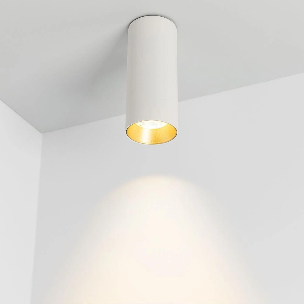Накладной светильник SP-POLO-SURFACE-R65-8W Day4000 (WH-GD, 40 deg) мощностью 8 Вт с дневным белым цветом свечения (4000 К) и световым потоком 570 лм. Индекс цветопередачи CRI>80 обеспечивает качественный свет, не вызывающий переутомления глаз. Компактный цилиндрический корпус совместим с разными типами потолков, а окрашенная декоративная вставка придаст оригинальность в любом интерьере. Узкий угол излучения 40° позволяет организовать акцентное и локальное освещение в разных типах помещений. Встроенный драйвер обеспечивает быстрое и безопасное подключение к сети 230 В.