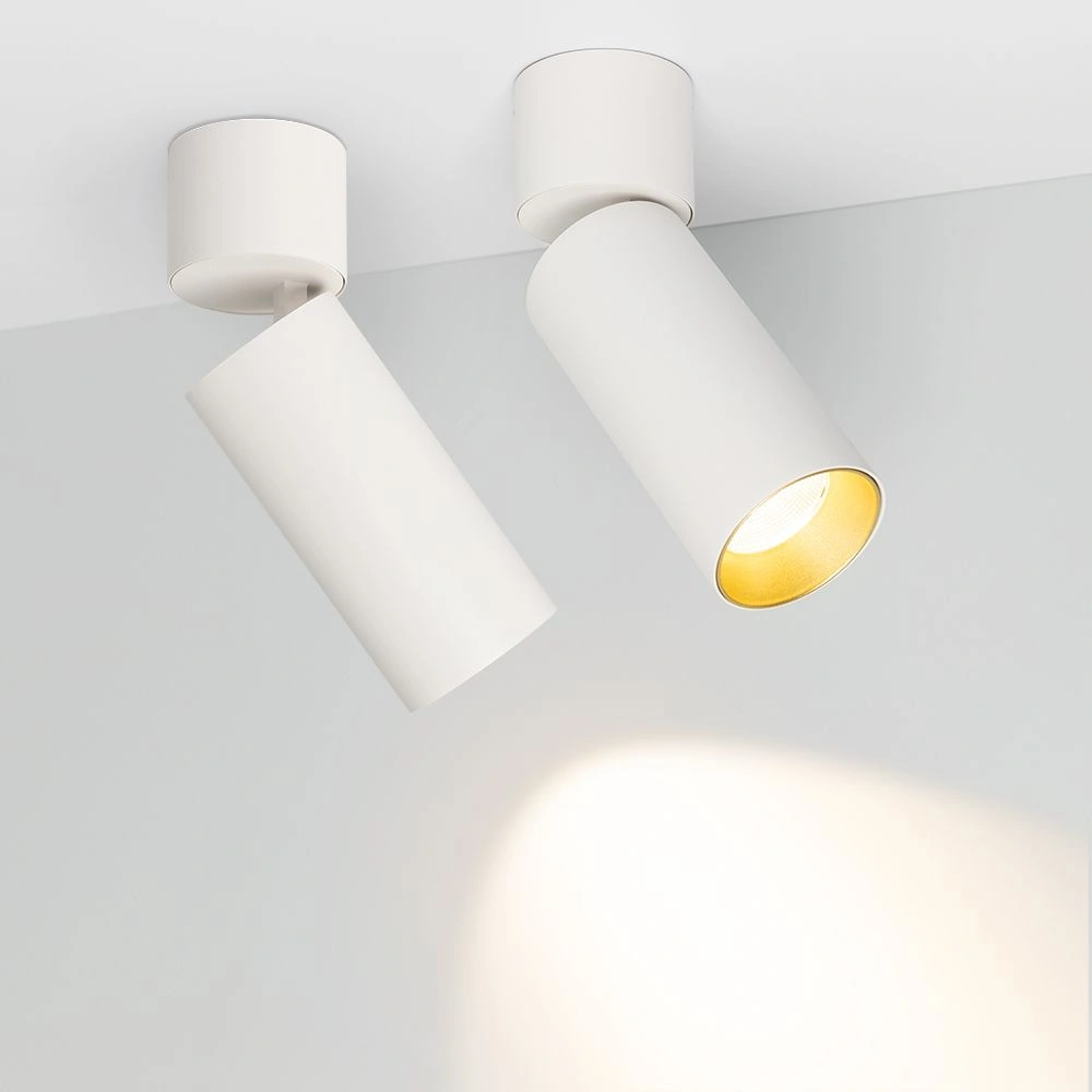 Накладной откидной светильник SP-POLO-SURFACE-FLAP-R65-8W Day4000 (WH-GD, 40 deg) мощностью 8 Вт с дневным белым цветом свечения (4000 К). Индекс цветопередачи CRI>80 обеспечивает качественный свет, не вызывающий переутомления глаз. Компактный цилиндрический корпус совместим с разными типами потолков, а окрашенная декоративная вставка придаст оригинальность в любом интерьере. Откидной механизм предусматривает возможность быстрой регулировки направления света. Встроенный драйвер обеспечивает быстрое и безопасное подключение к сети 230 В. Светильник с узким углом излучения 40° и световым потоком 570 лм предназначен для локального интерьерного освещения и реализации дизайнерских решений в разных помещениях.