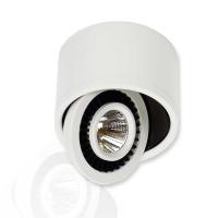Светодиодный светильник накладной. Цилиндрический белый корпус. Напряжение 85-265V, мощность 7Вт, цвет свечения теплый белый 3000-3500K, световой поток 700Lm. Угол свечения 60 градусов, регулируемый угол наклона. Диаметр 86мм, высота 66мм. Вес 310г.