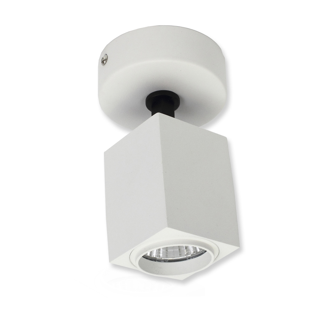 Светодиодный светильник накладной. Белый корпус. Напряжение 85-265V, мощность 10Вт, цвет свечения белый 6000K, световой поток 900Lm. Угол свечения 30 градусов, регулируемый угол наклона. Размеры 90х60х155мм. Вес 400г.